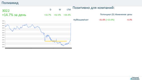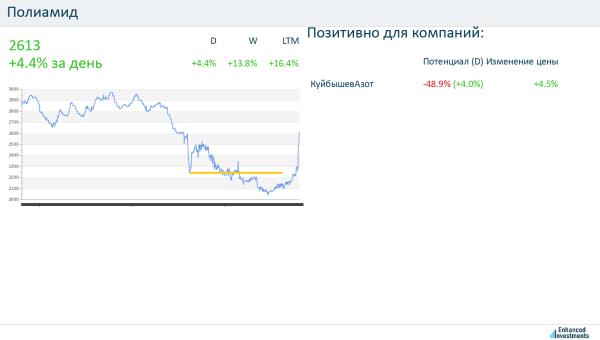 commodity #KAZT Сегодня сильный рост показывает Полиамид (+14.7%), что позитивно влияет на компании: