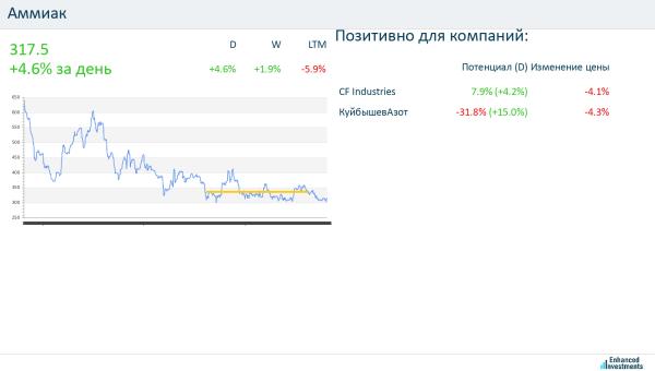 commodity #CF #KAZT Сегодня сильный рост показывает Аммиак (+5.9%), что позитивно влияет на компании: