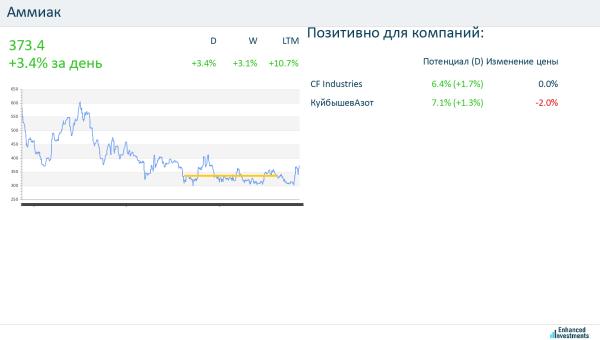 commodity #CF #KAZT Сегодня сильный рост показывает Аммиак (+4.6%), что позитивно влияет на компании: