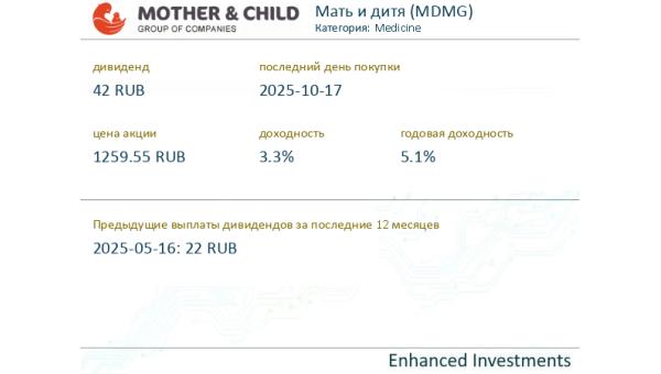 Мать и дитя: руководство рекомендует дивиденды 42 рубля на акцию