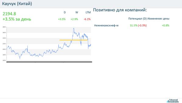 commodity #NKNC Сегодня сильный рост показывает Каучук (Китай) (+3.3%), что позитивно влияет на компании:
