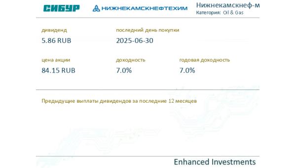 dividend #NKNC Нижнекамскнеф-м (Oil & Gas) выплатит дивиденды в размере 5.86 RUB на акцию 2025-06-30, что составляет 7.0% от текущей цены 84.15. ...