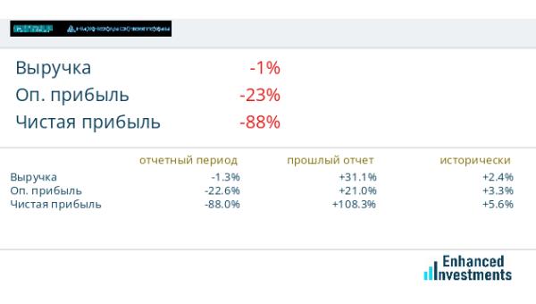 Выручка -1.3% г/г (против +31.1% в предыдущем квартале и исторического темпа +2.4%) - EBITDA -88% г/г (против 108.3% в предыдущем квартале и исторического темпа >200%) - Чистый долг сократился на 9.7 млр ...