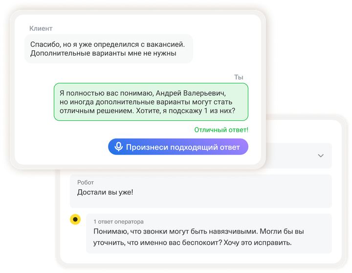 Готовьтесь к запуску новых сервисов — отрабатывайте диалоги и сложные ситуации с речевым тренажером. Например, для работы в отделе взыскания