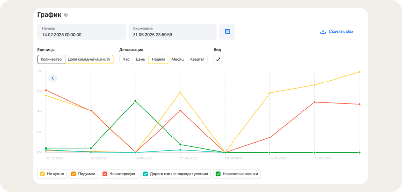 Если операторы часто не отрабатывают возражения, организуйте регулярные встречи для обмена опытом — такой формат поможет им учиться на примерах коллег. В качестве материала для отработки возьмите возражения, которые подсвечивает другой инструмент Речевой аналитики — Insights.