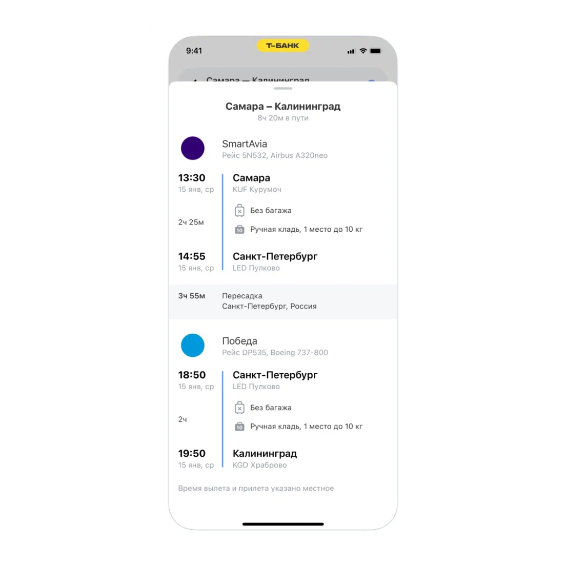В обоих случаях регистрироваться и сдавать багаж будете два раза — сначала в Самаре, а затем в Санкт-Петербурге.