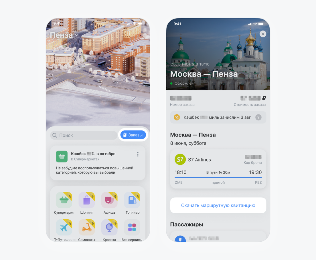 Чтобы скачать маршрутную квитанцию, в приложении Т-Банка, на вкладке «Город» нажмите «Заказы», откройте вкладку «Путешествия» и выберите нужный заказ. В открывшемся заказе нажмите кнопку «Скачать маршрутную квитанцию»
