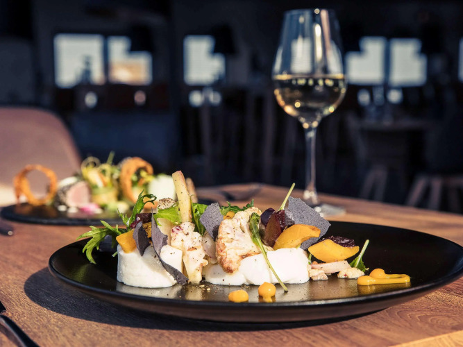 Обеденная зона в отеле представлена рестораном интернациональной кухни с широким ассортиментом напитков и закусок. Ежедневно гостям предлагается бесплатный континентальный завтрак . Более основательно подкрепиться можно в многочисленных кафе в округе.