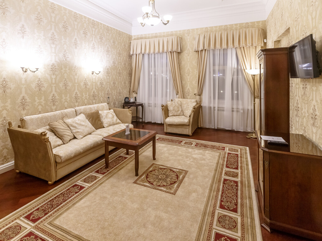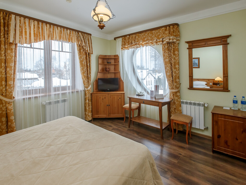 Размещение с собаками мелких пород (до 10 кг) возможно в номерах категории стандарт на 1 этаже и в отдельных номерах в русском подворье (требуется согласование с отделом бронирования).