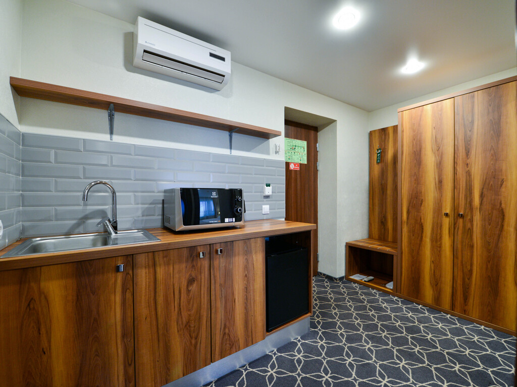 Во всех номерах произведен современный ремонт и есть все необходимое для комфортного отдыха. Для удобства гостей оборудованы общие кухни, а так же бытовые комнаты, оснащенные стиральной машиной и гладильными принадлежностями.