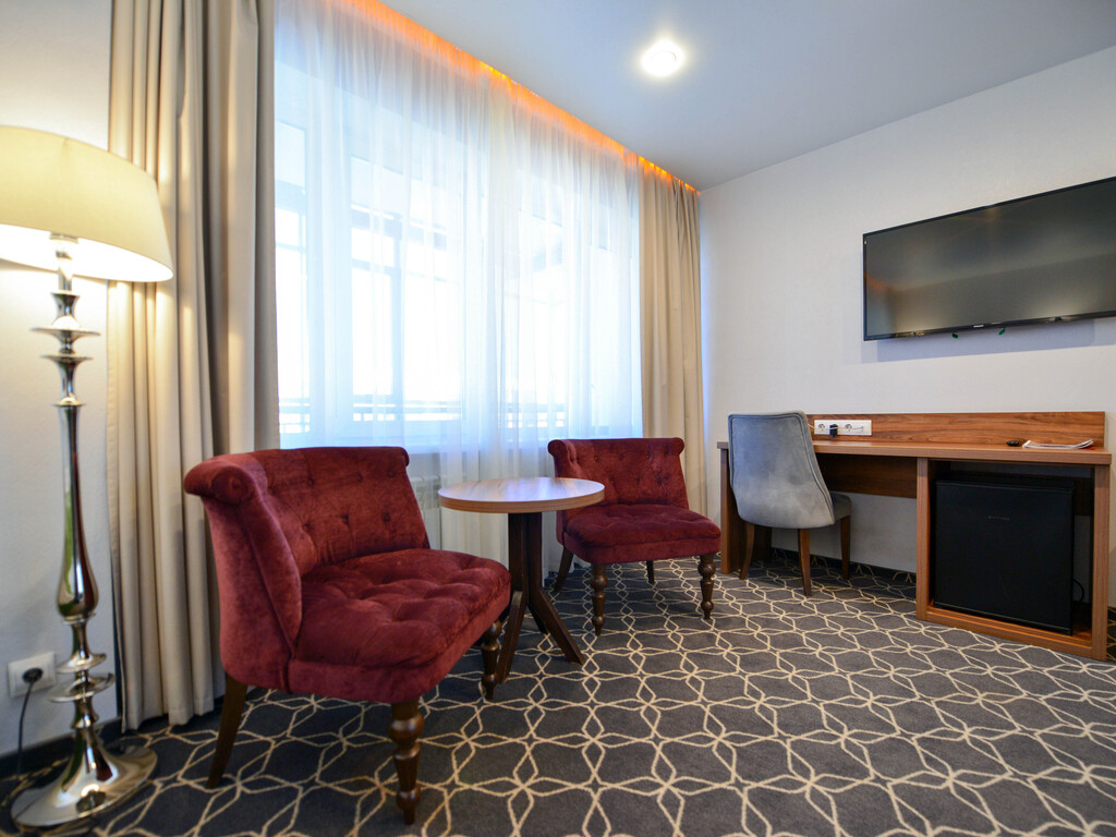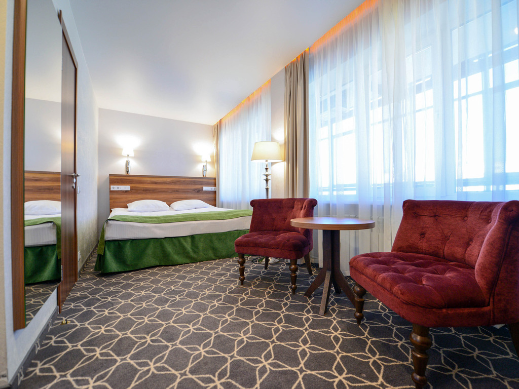 Площадь номеров от 12 до 40 м2. Все номера оснащены спутниковым телевидением, системой кондиционирования, беспроводным скоростным интернетом, мини-холодильниками, феном, электрическим чайником. В номерах категории Апартаменты и Семейный люкс есть мини-кухня с микроволновой печью.