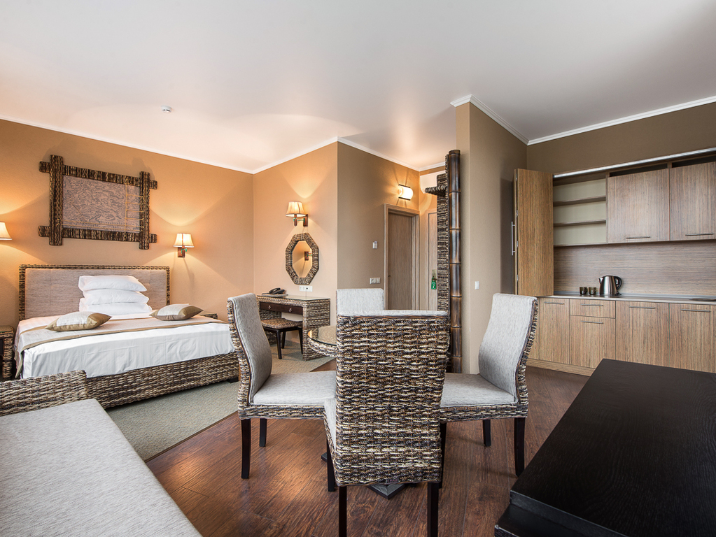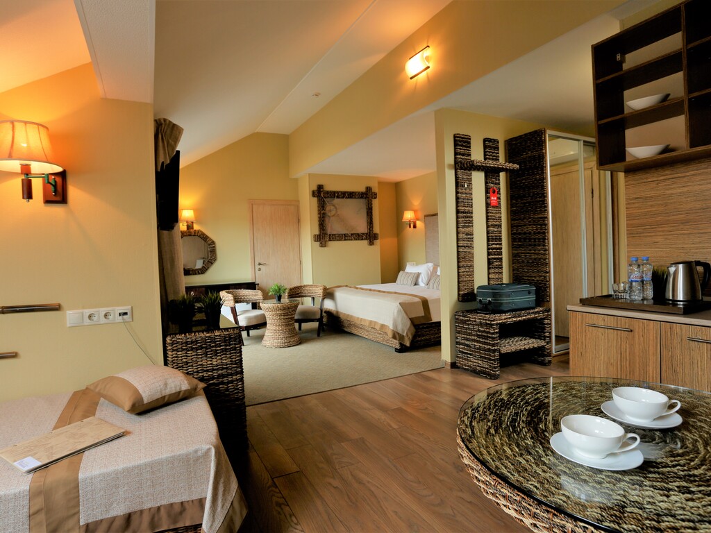 На территории отеля расположен спа-комплекс, состоящий из 6 видов бань (медово-шоколадная, арома-травяная, инфракрасная, финская, русская, турецкий хаммам), соляной пещеры, сеновала, открытого бассейна с подогревом, купели, гидромассажного бассейна, настоящего снега. Гостям предоставляются разнообразные услуги массажа и более 50 процедур спа-ухода, wellness-программы, направленные на оздоровление и омоложение всего организма