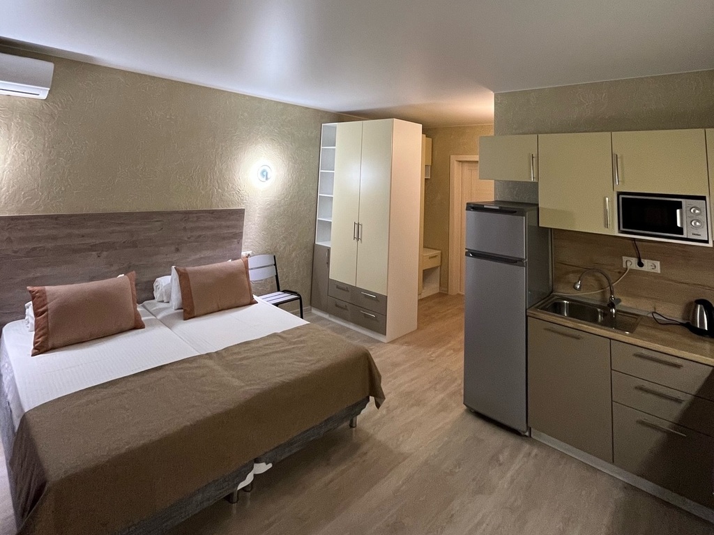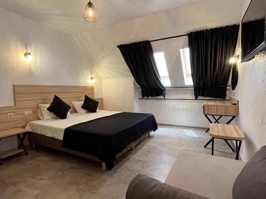 Для бронирования предлагаются номера различных категорий: Стандарт, Стандарт мансарда, Студия и Апартаменты. Номера оснащены комфортабельной мебелью, кроватями с ортопедическими матрасами, кондиционером, телефоном, телевизором, мини-холодильником, удобной рабочей зоной, Wi-Fi, и собственной ванной комнатой. Ванная комната оснащена стандартным набором сантехники с туалетно-косметическими принадлежностями. Для гостей предоставлены все условия для комфортного проживания в сочетании с высоким уровнем обслуживания. К услугам отдыхающих просторная терраса.