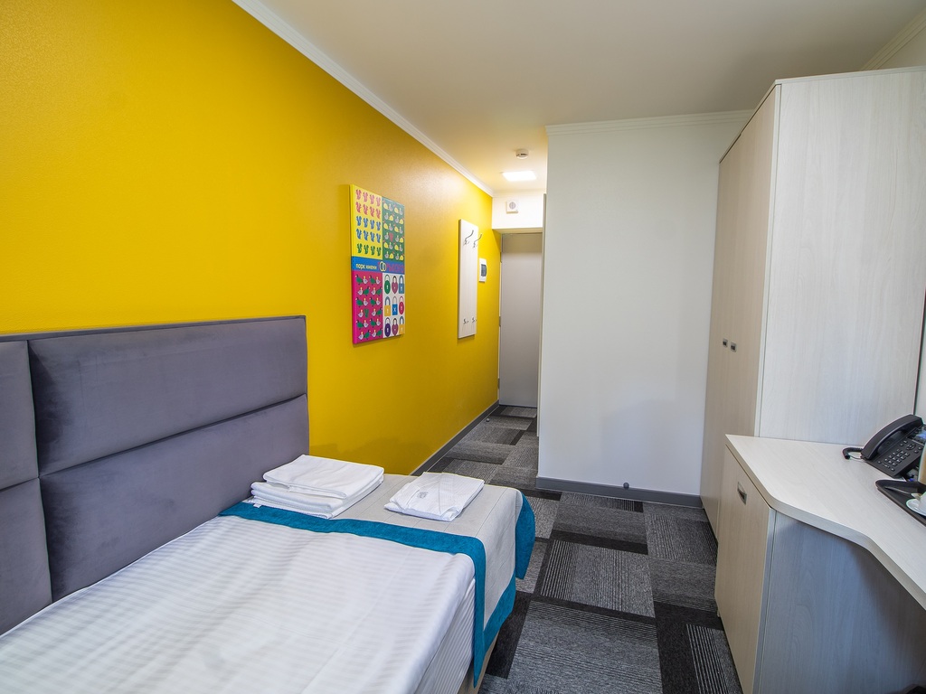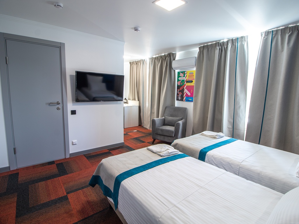 В номерах эконом-класса, расположенных на 3 и 4 этажах гостиницы интерьер номеров прост и непритязателен.