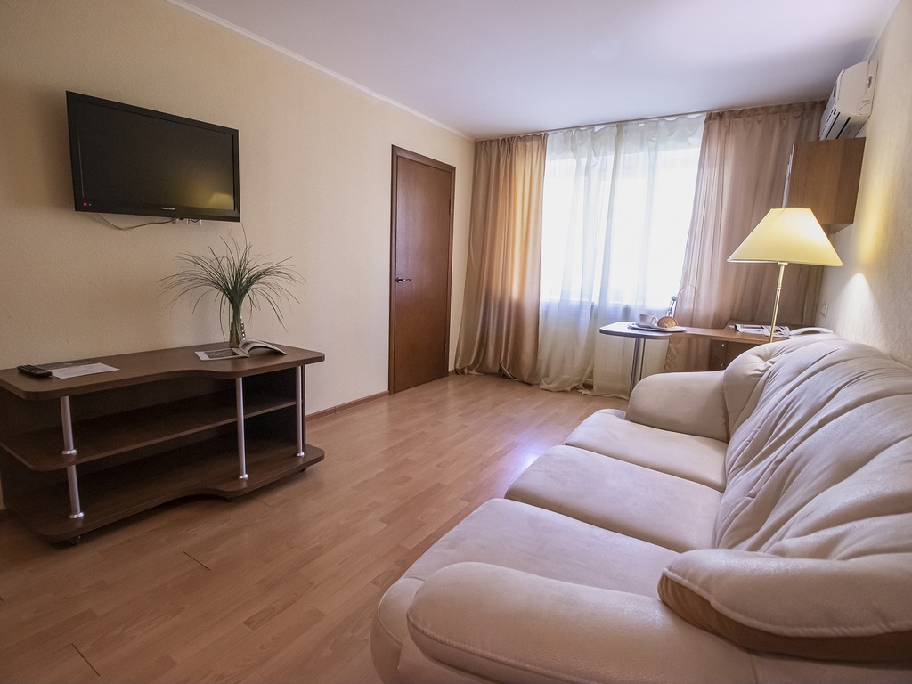 Расстояние от ж/д вокзала до гостиницы - 1,5 км., от аэропорта «Гагарин» - 46,4 км ( в пути 1 ч 6 мин.)