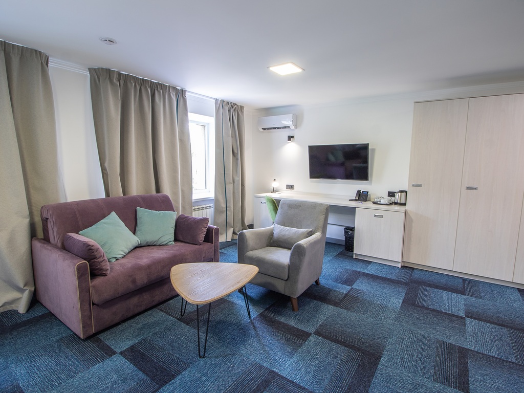 К услугам наших гостей - новый номерной фонд, круглосуточный ресепшен, парковка и мини-кофейня с Wi-fi.