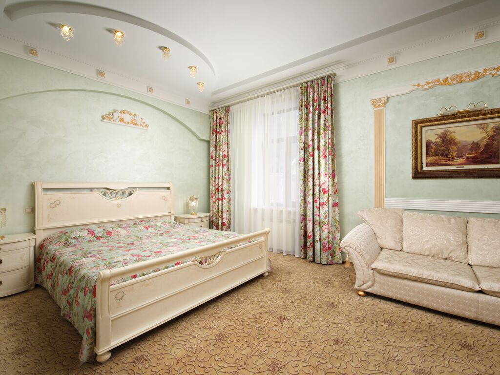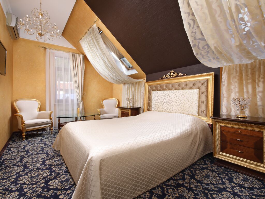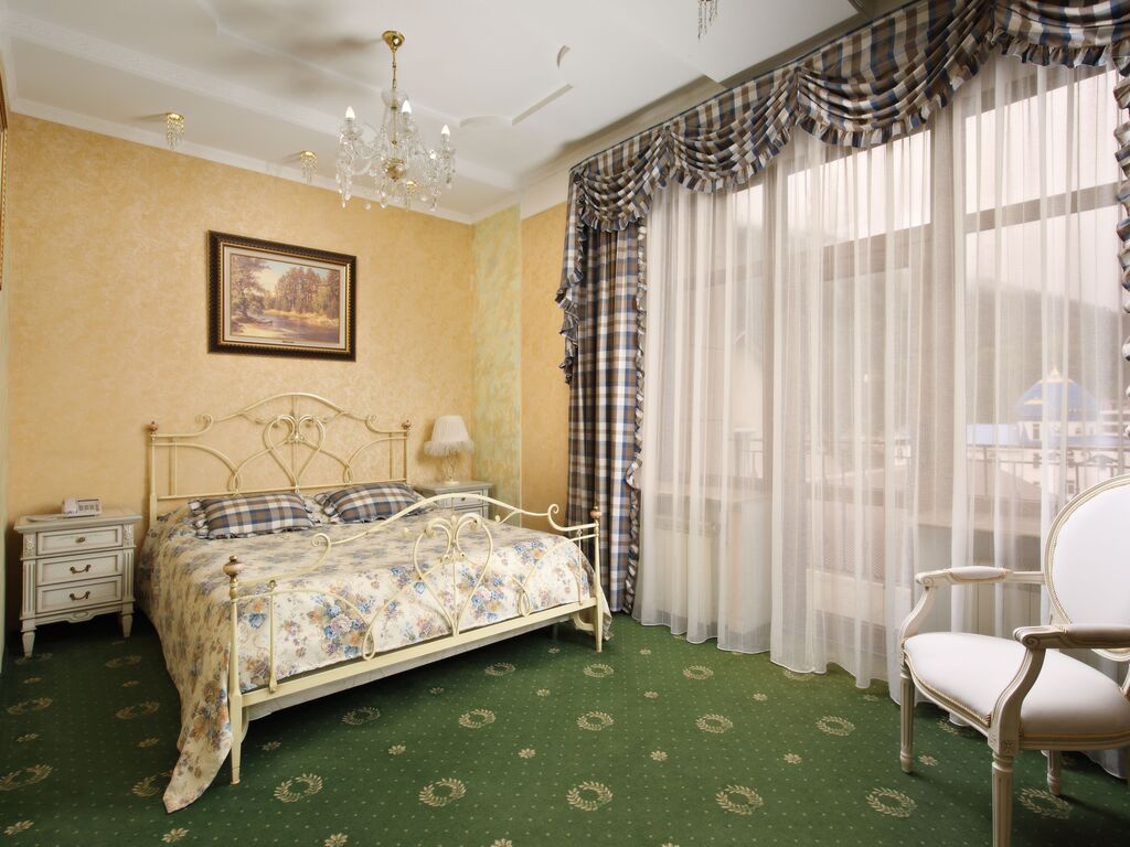 В четырёхэтажном корпусе находятся 11 просторных номеров. В каждом номере имеется спальный гарнитур с двуспальной кроватью, телевизором, шкаф-купе, холодильником.