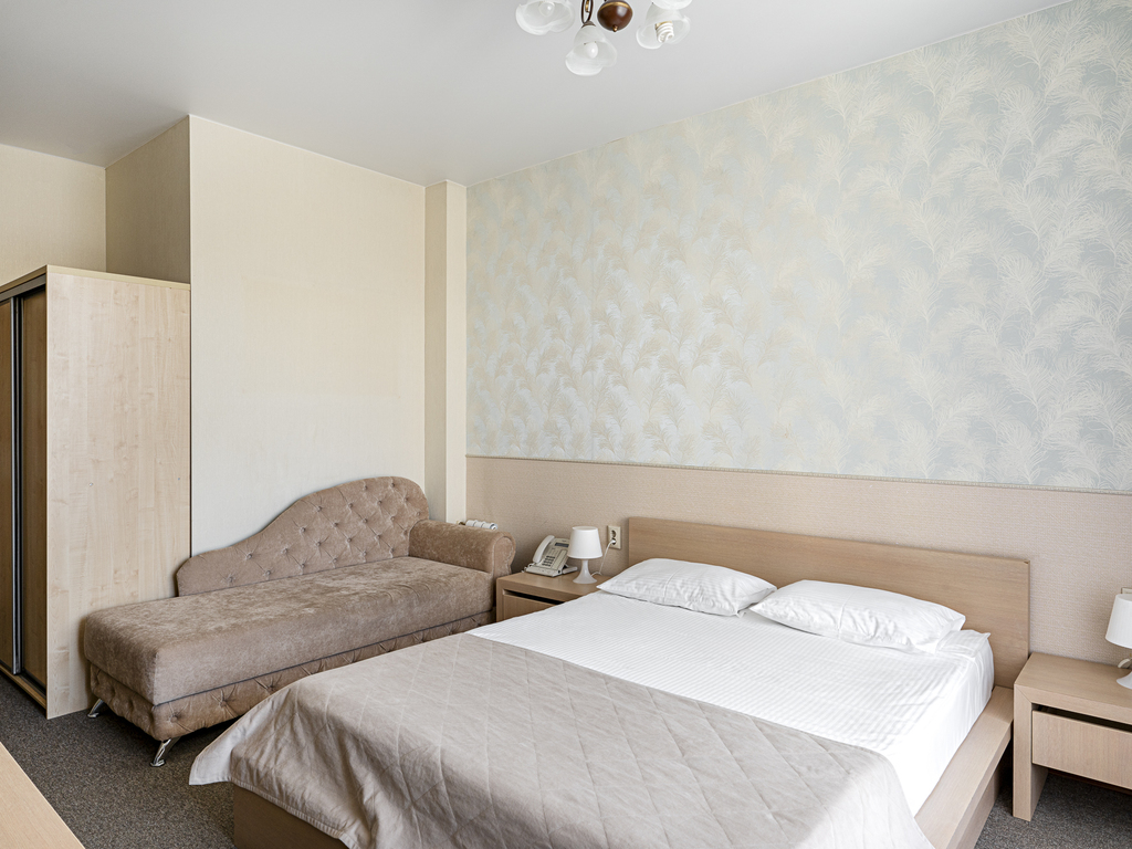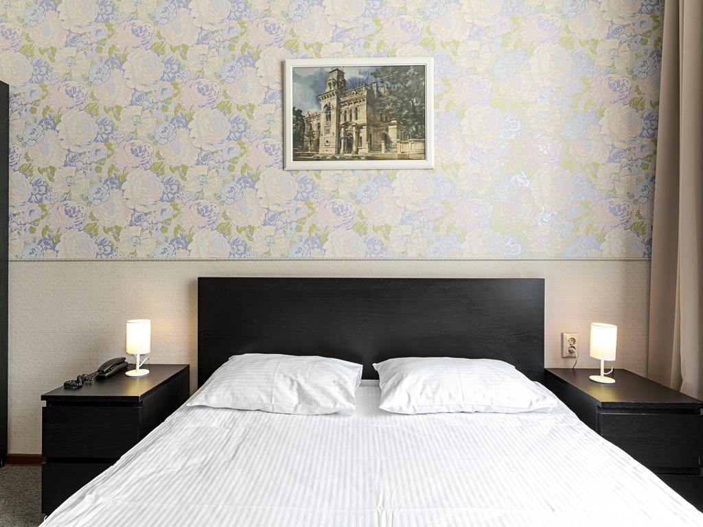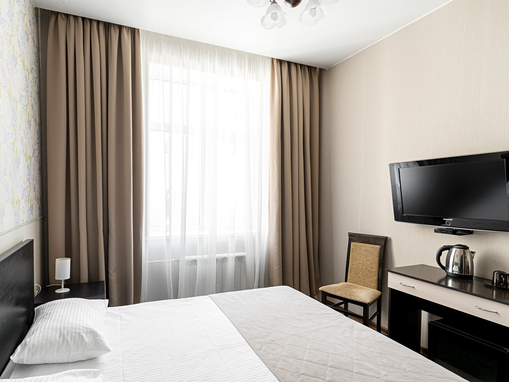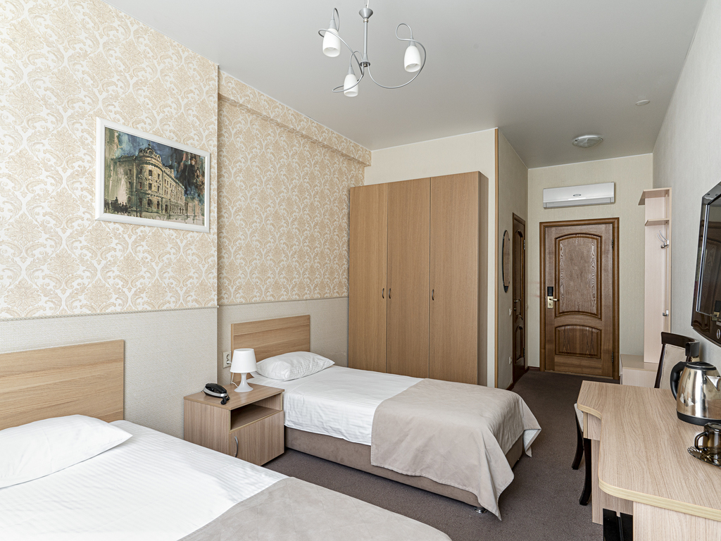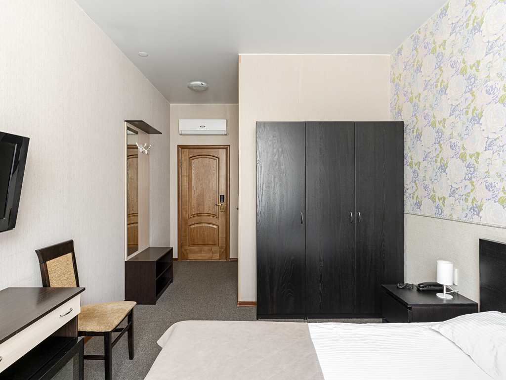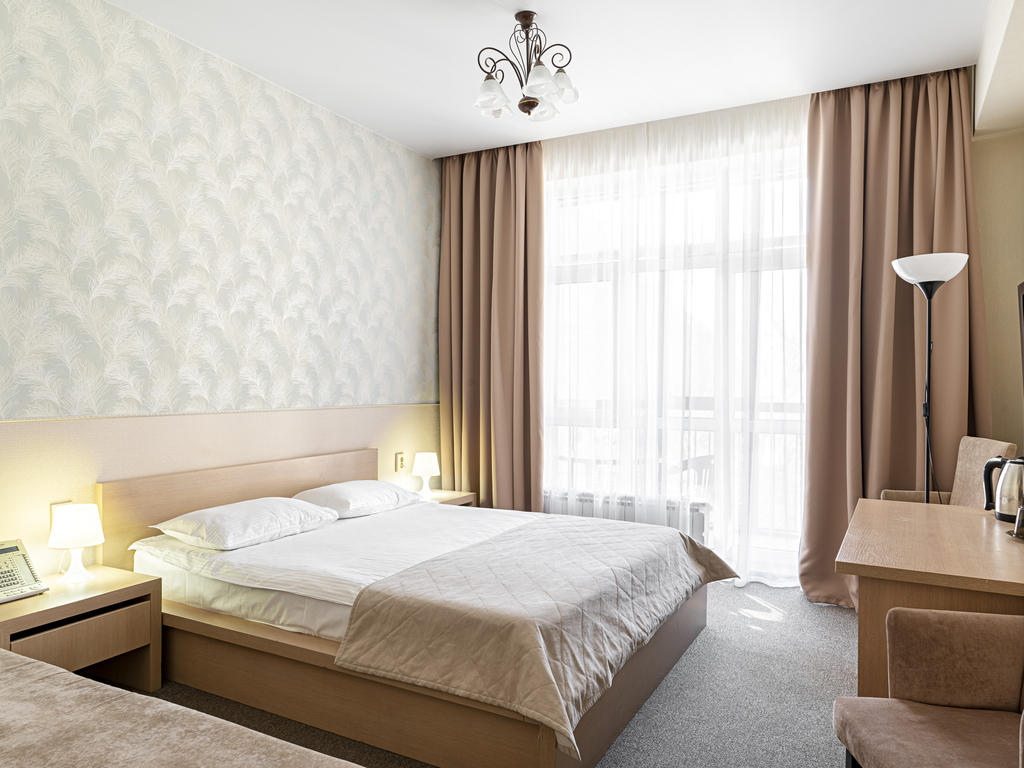 В гостинице есть номера первой (стандарт) и высшей категории. В собственных ванных комнатах имеется душ, туалет, фен, набор полотенец и гигиенические принадлежности. Комнаты оборудованы современной техникой и мебелью.