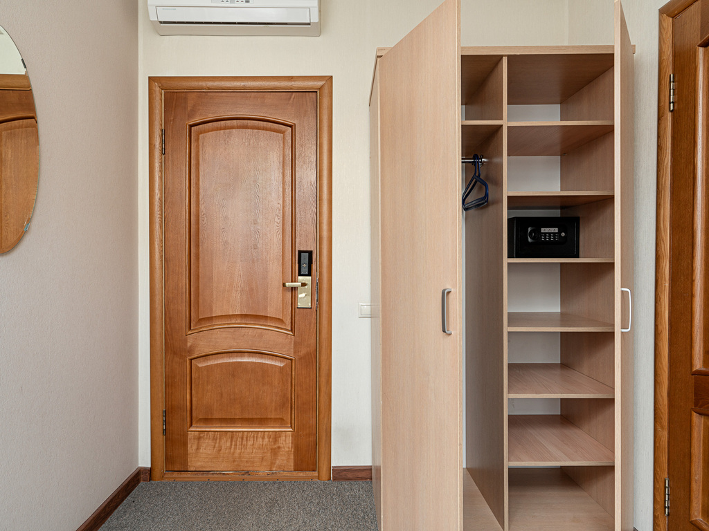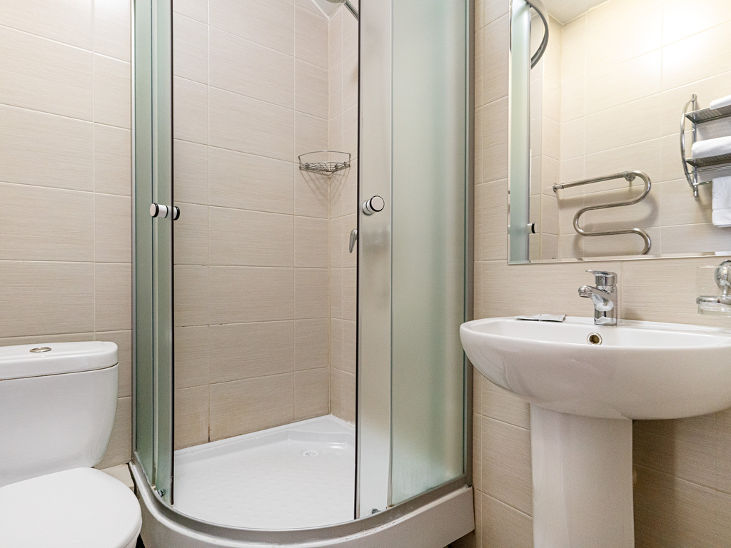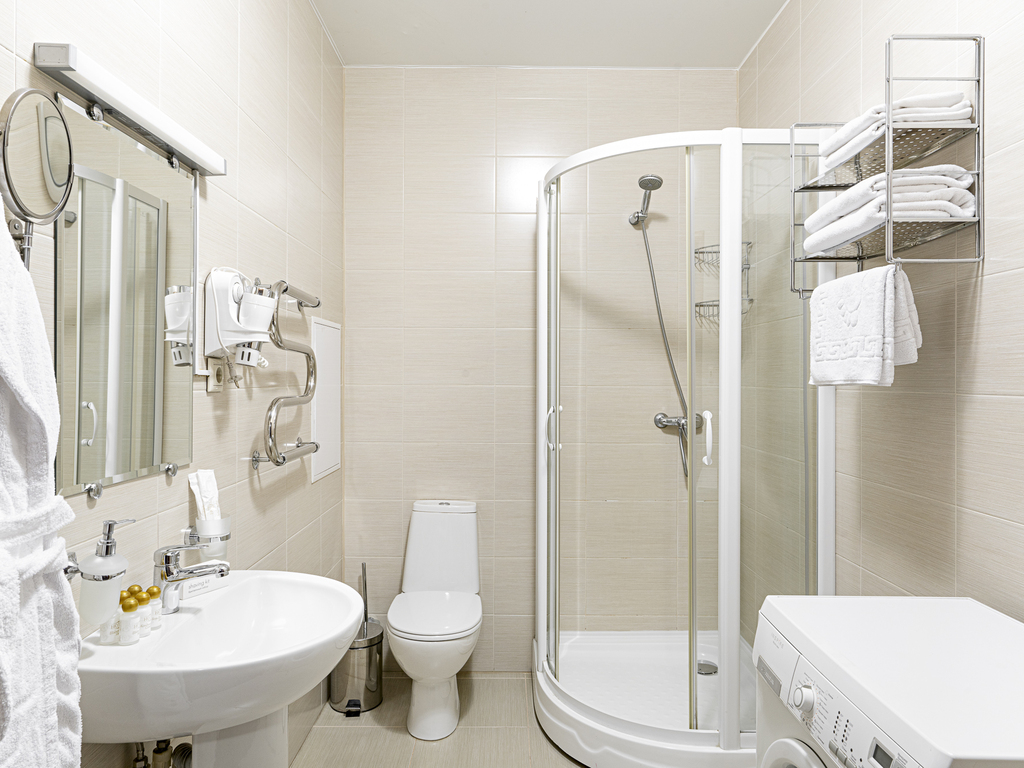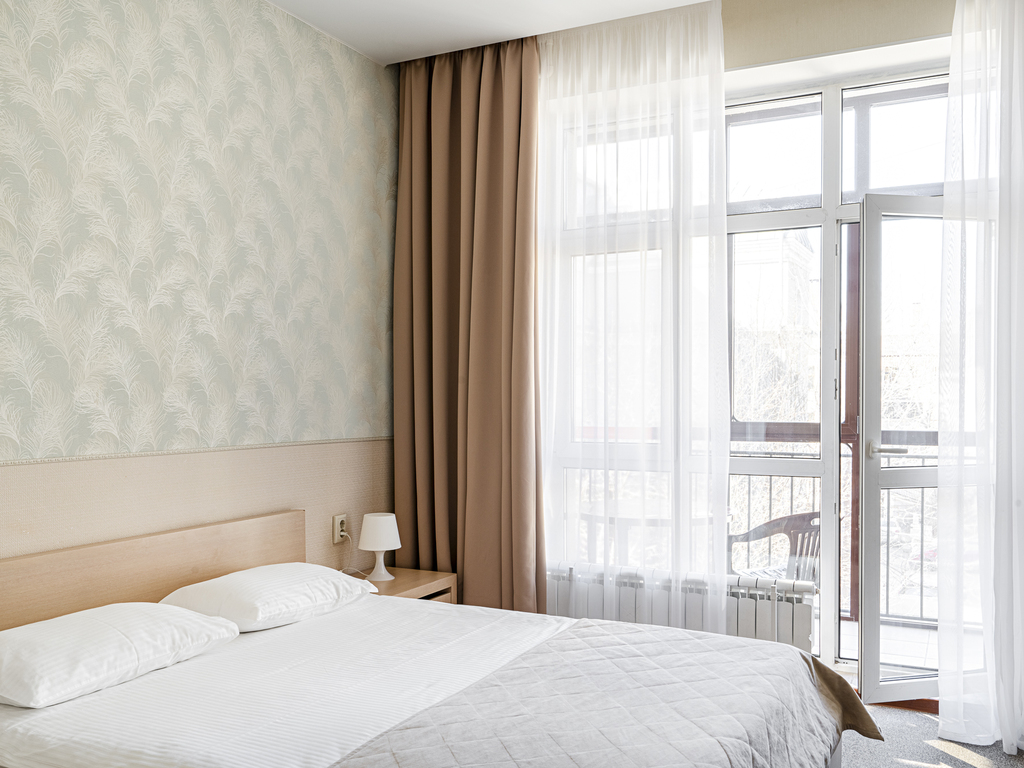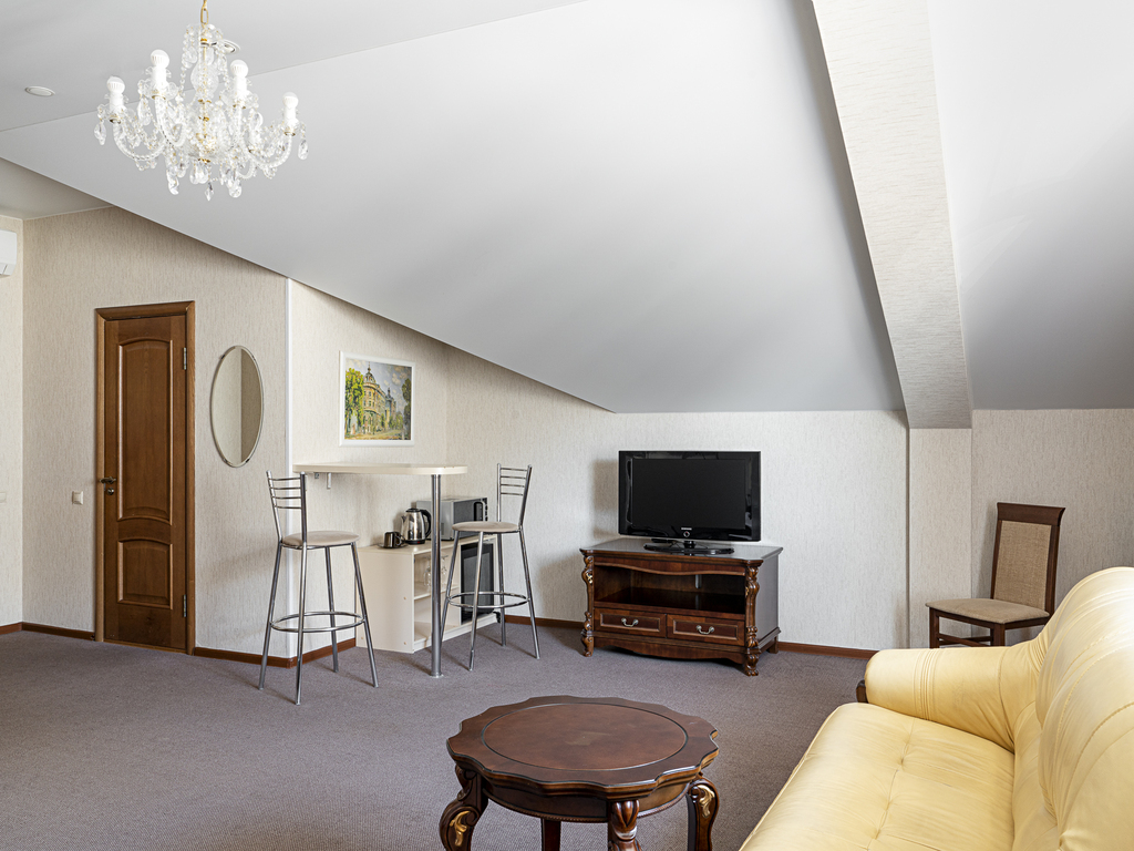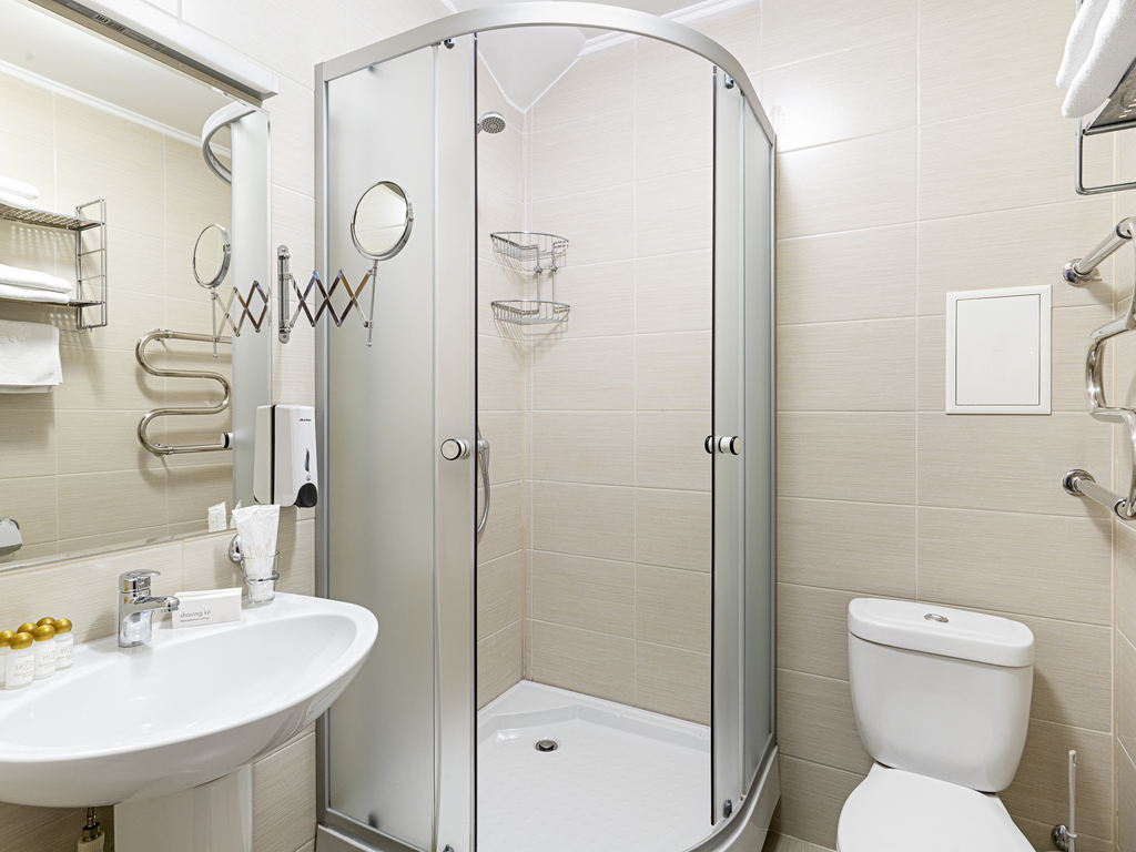 В гостинице есть номера первой (стандарт) и высшей категории. В собственных ванных комнатах имеется душ, туалет, фен, набор полотенец и гигиенические принадлежности. Комнаты оборудованы современной техникой и мебелью.