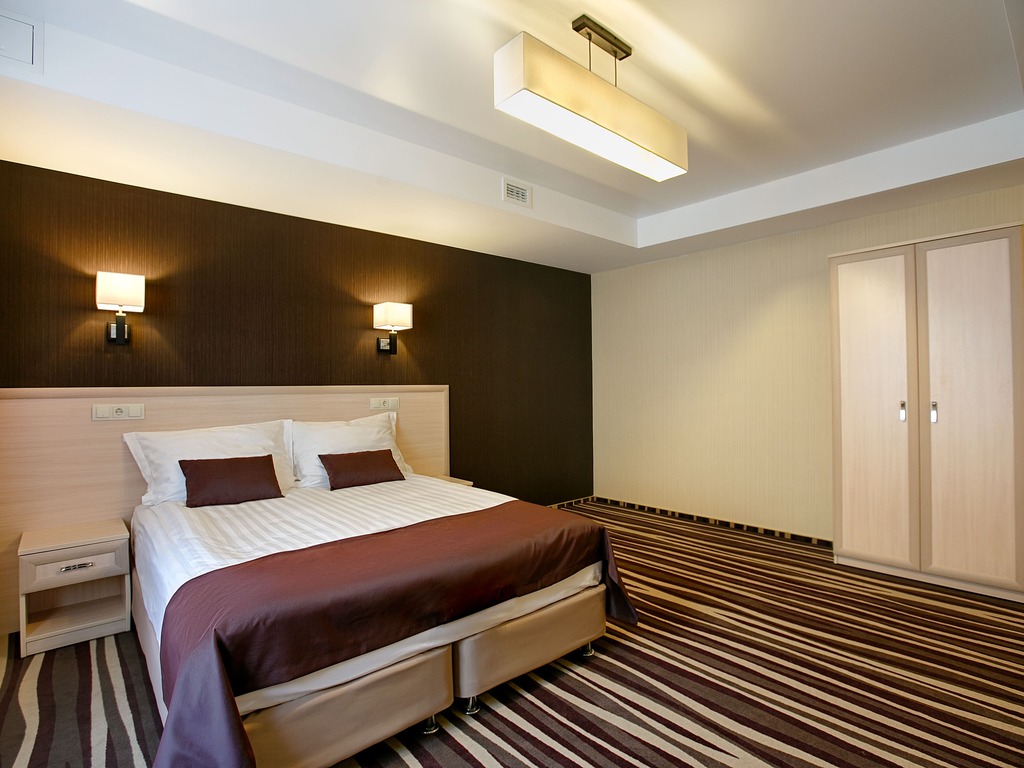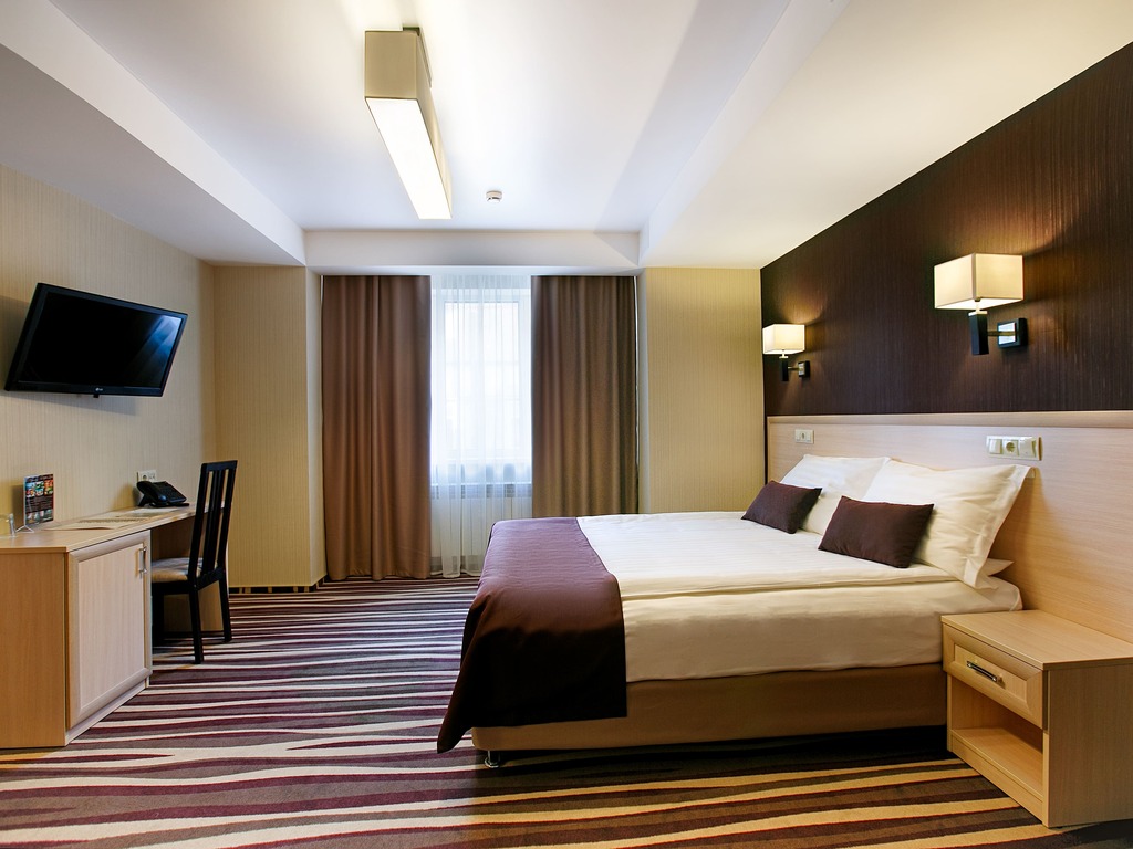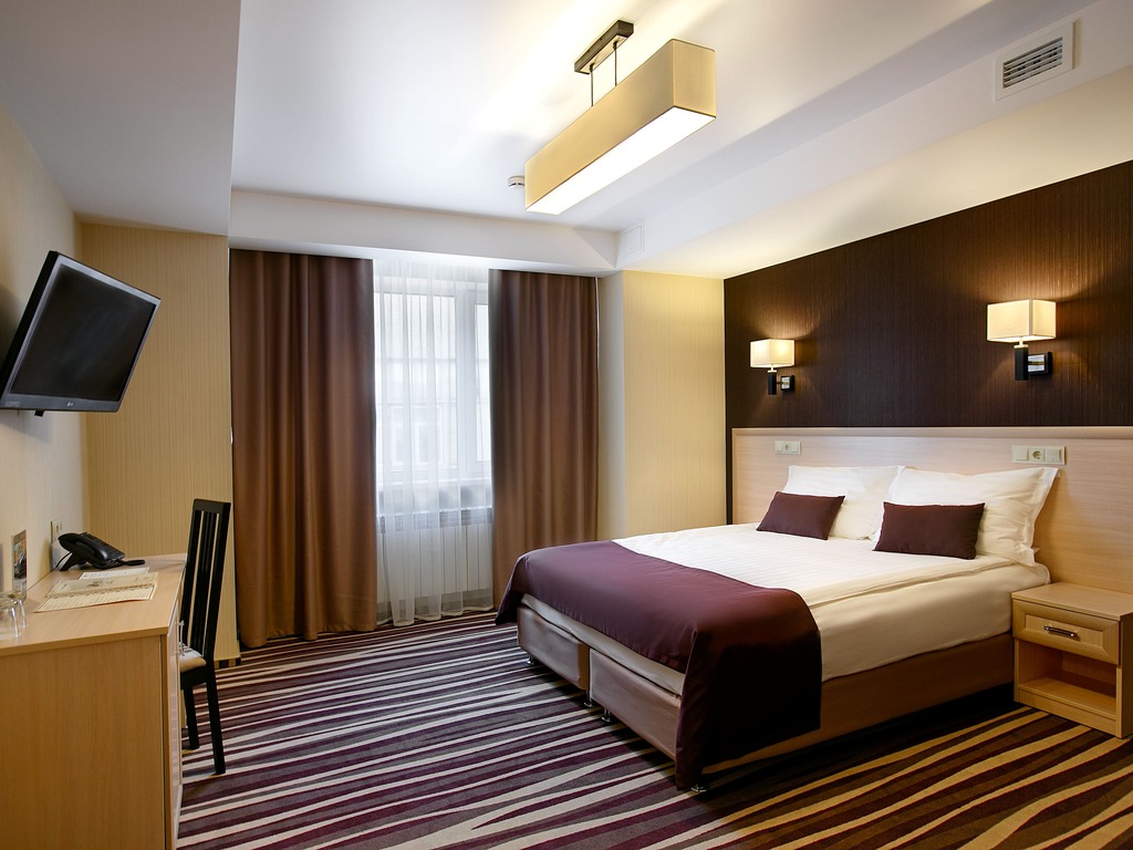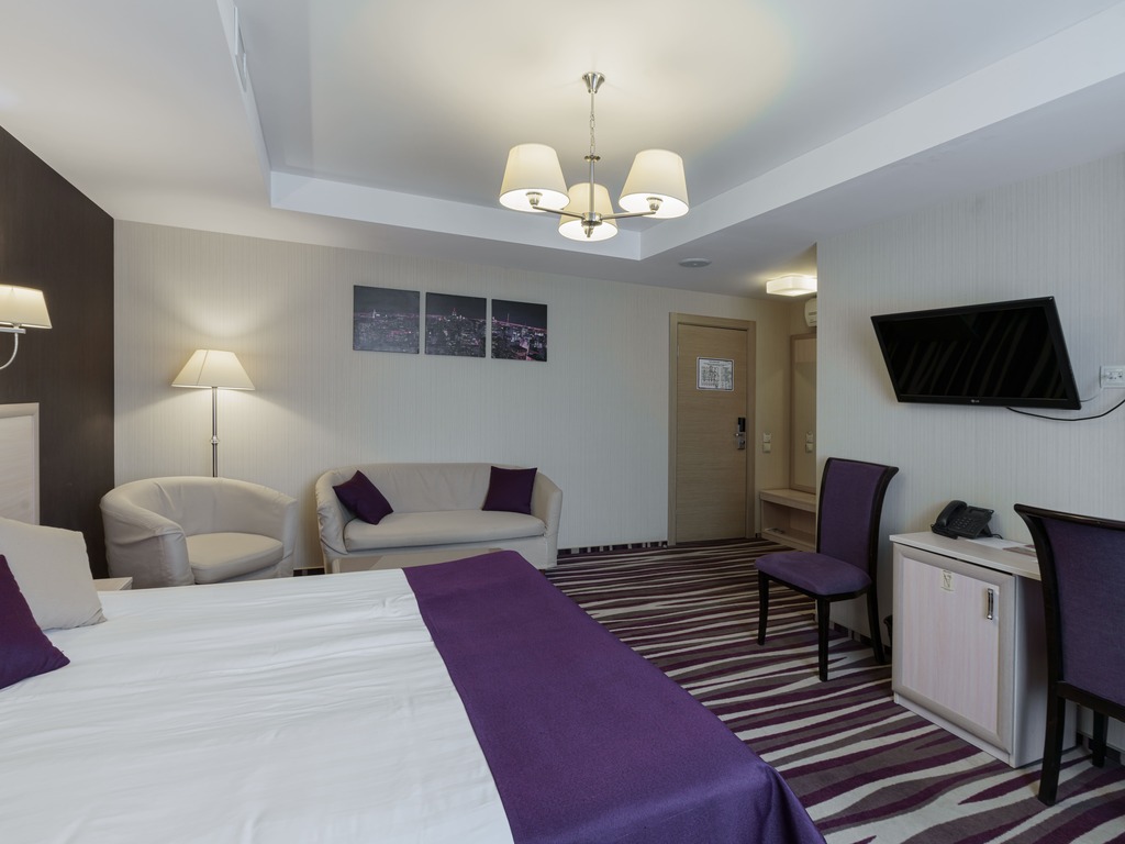 В числе удобств каждого из 75 просторных и уютных номеров — кондиционер, холодильник, сейф, телевизор с плоским экраном и каналами спутникового телевидения, рабочий стол. Ванная комната укомплектована феном, также гостям предоставляются халаты, тапочки и бесплатные туалетно-косметические принадлежности.