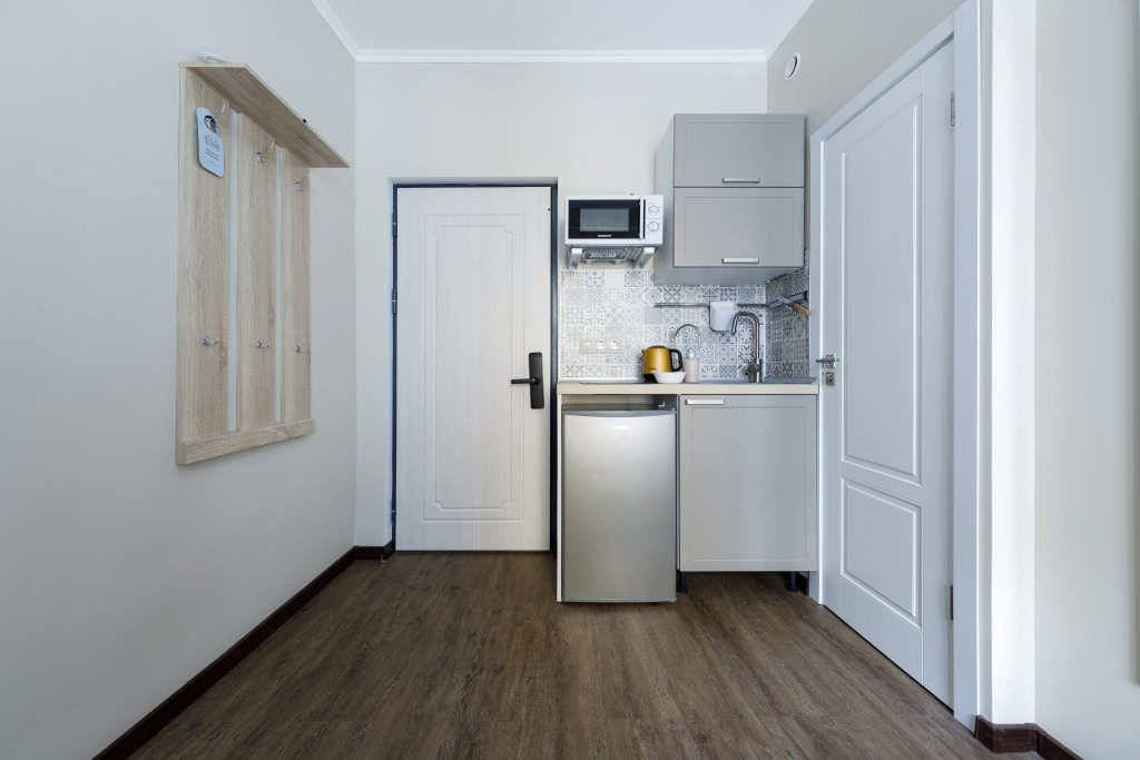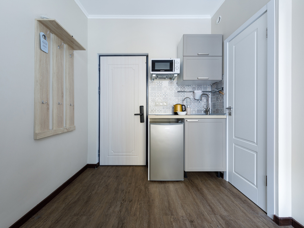 Отель насчитывает 4 комфортабельных номера различных категорий вместимостью от 1 до 2 человек. Современные номера отеля оборудованы индивидуальной ванной комнатой с душевой кабиной, феном и косметическими принадлежностями, удобной кроватью и телевизором со встроенным Smart-TV. В каждом номере есть своя мини-кухня со всем необходимым.