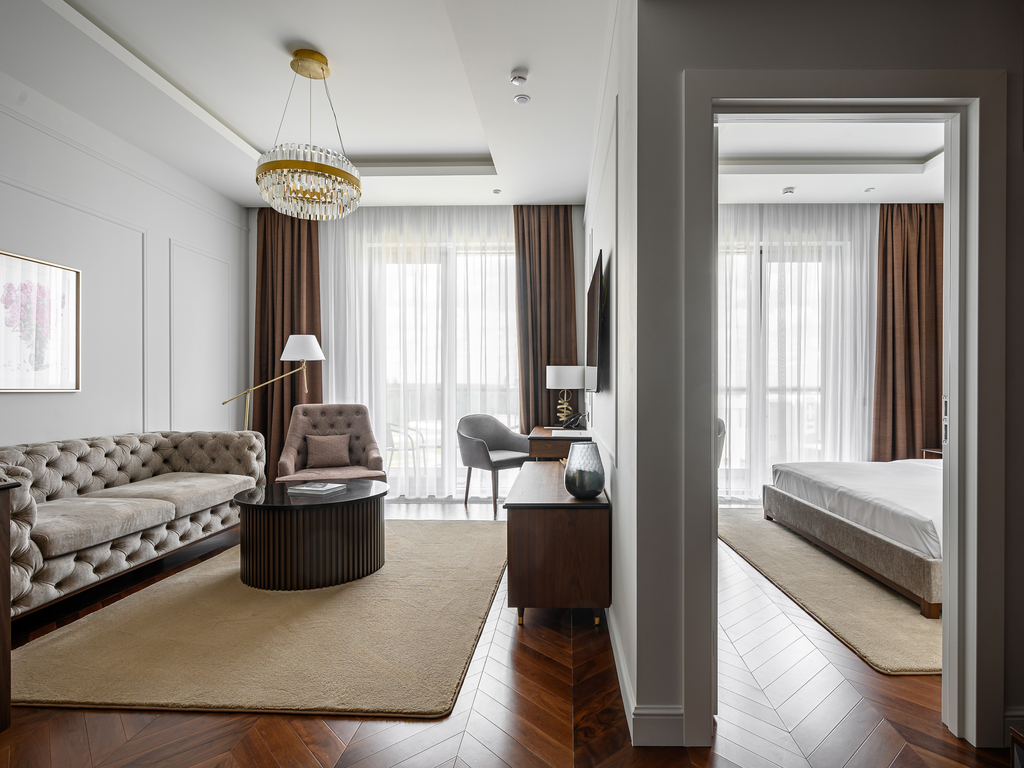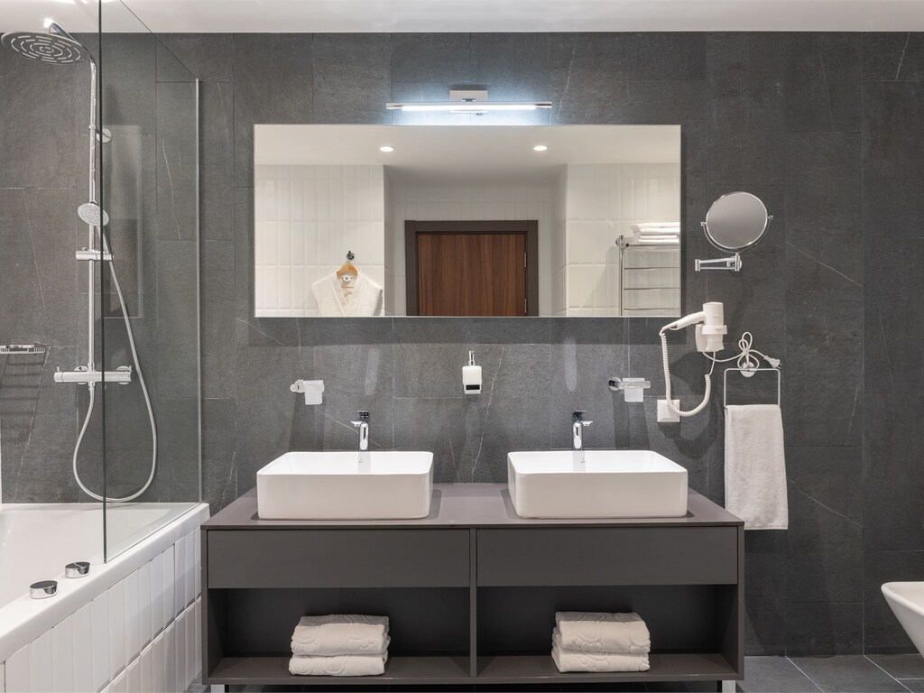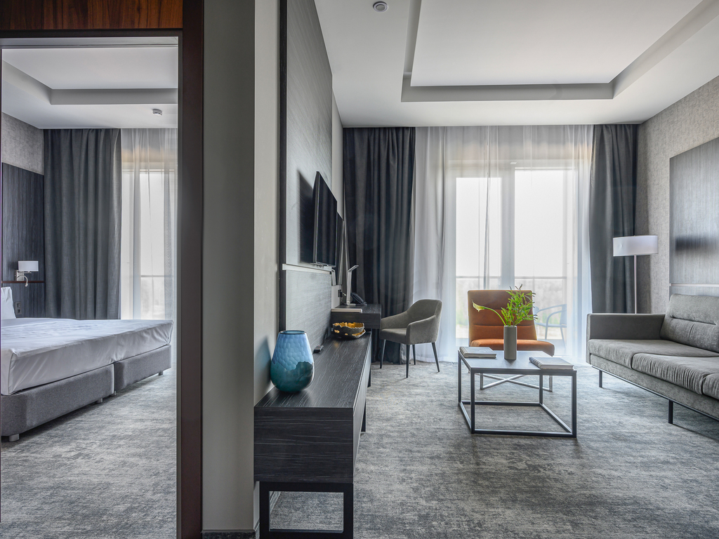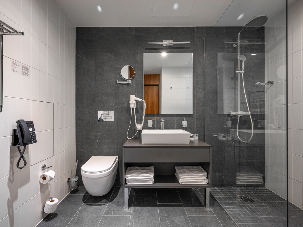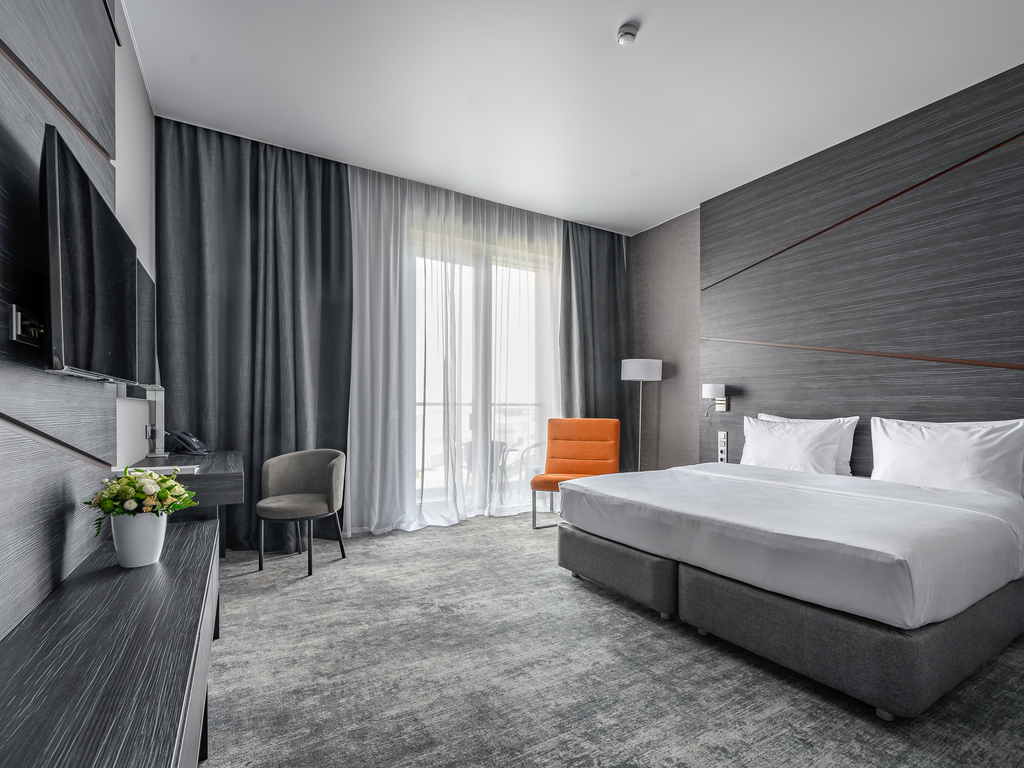В каждом номере есть необходимое для отдыха: кровати с ортопедическими матрасами, система зонального освещения, шторы «total black», чайная станция, мини-холодильник и душевая или ванная комната.