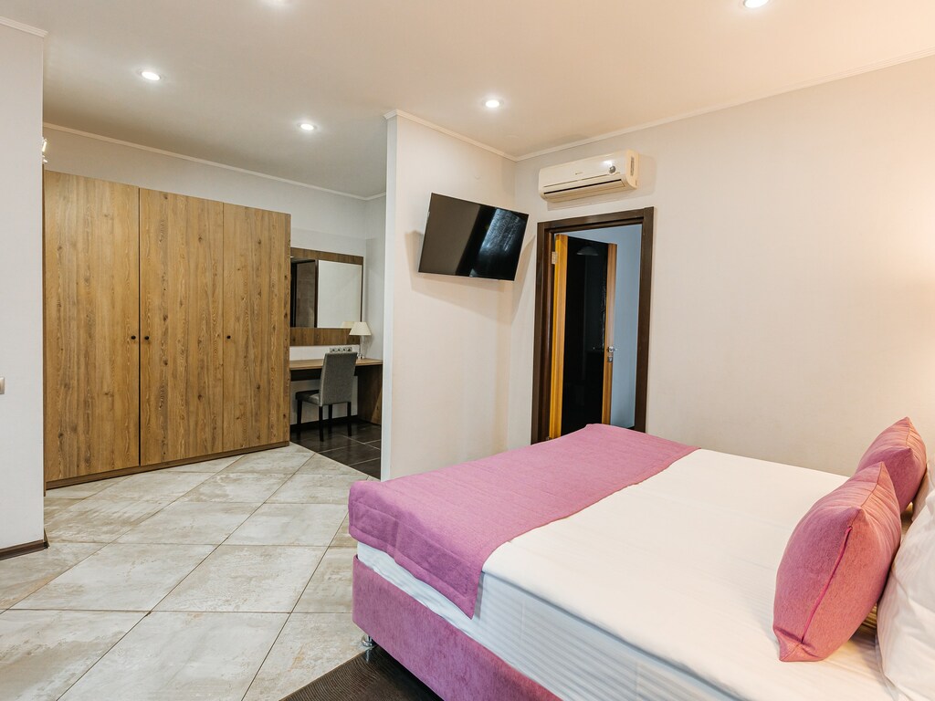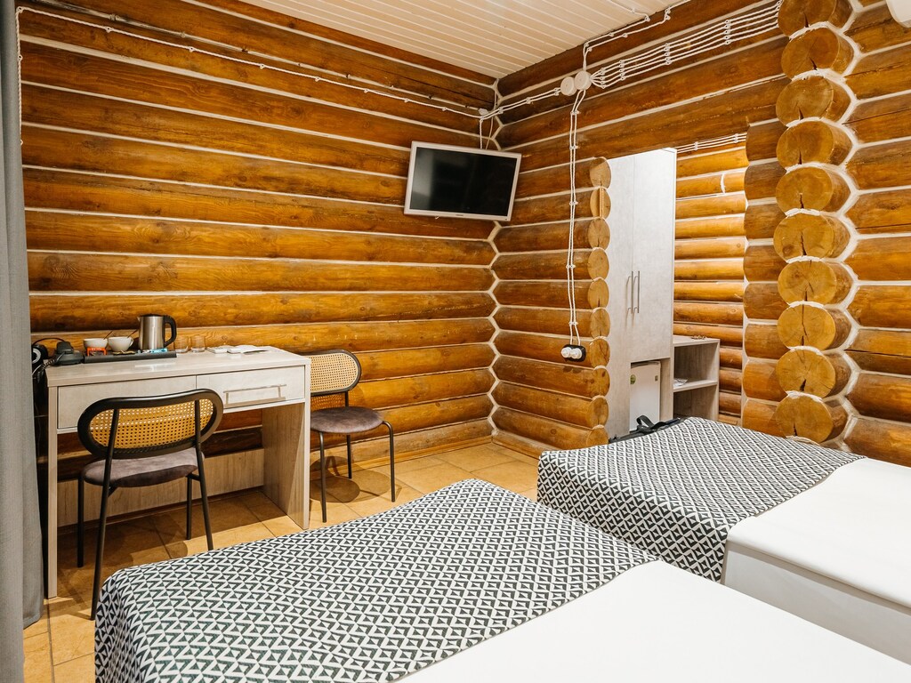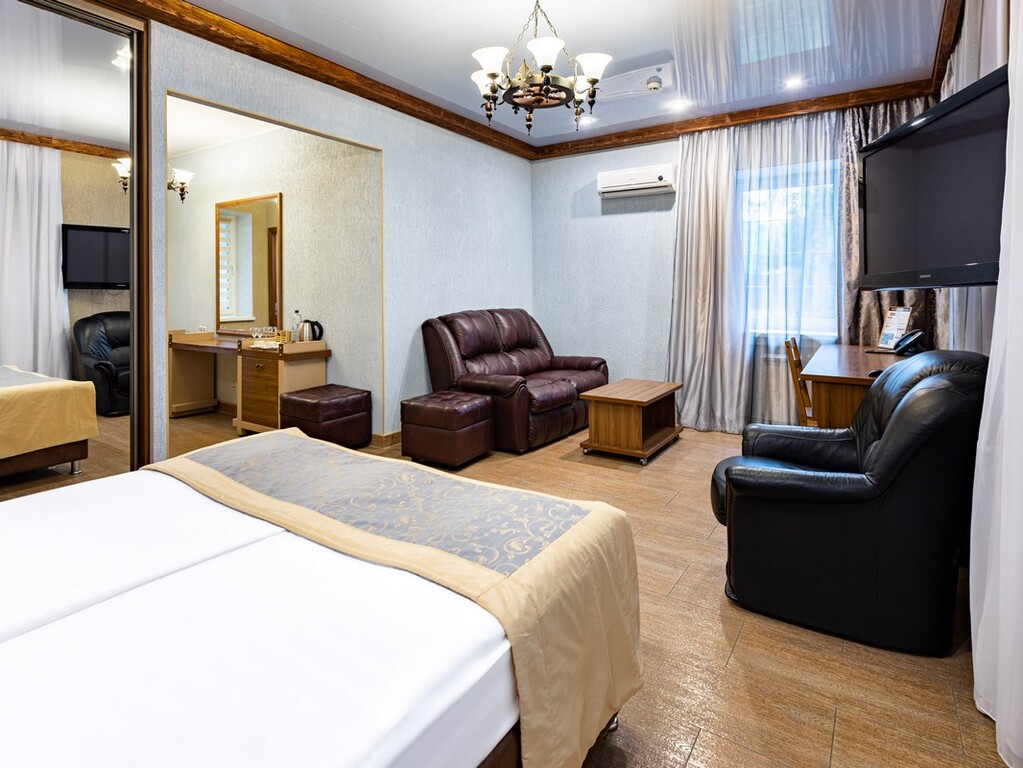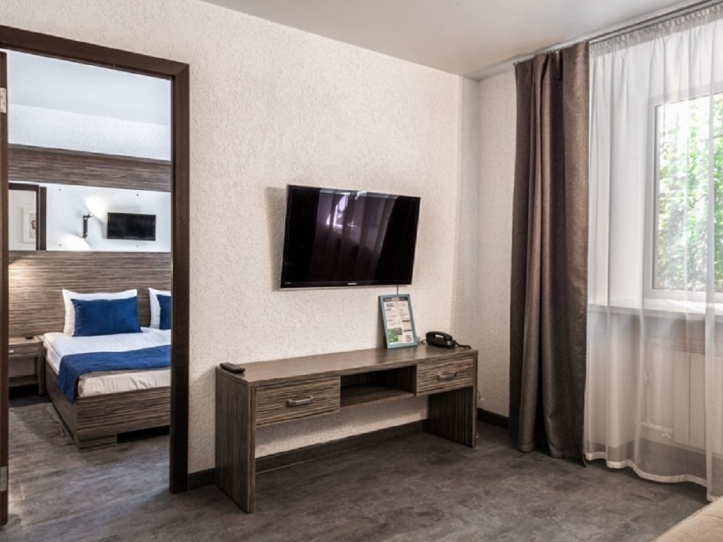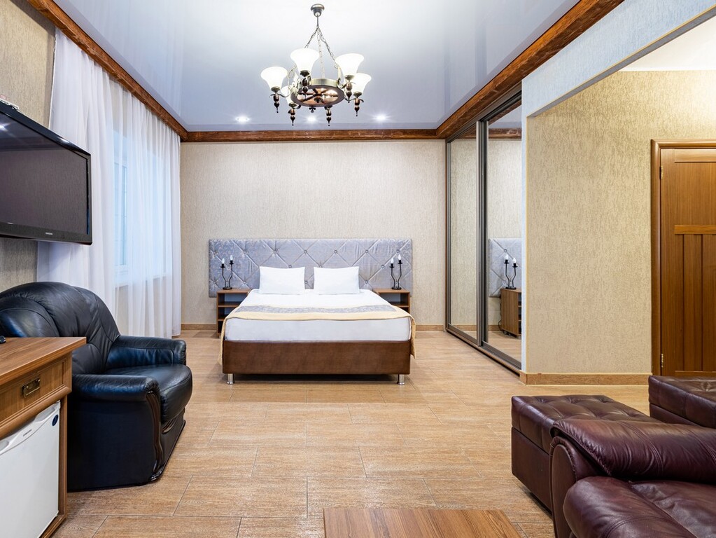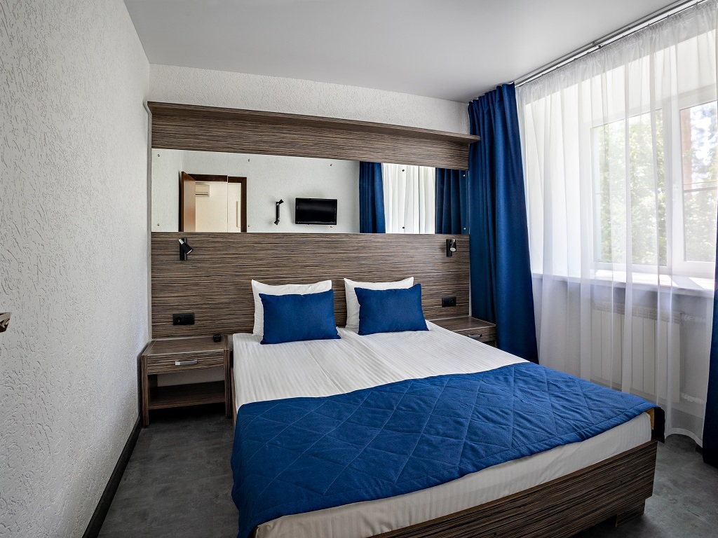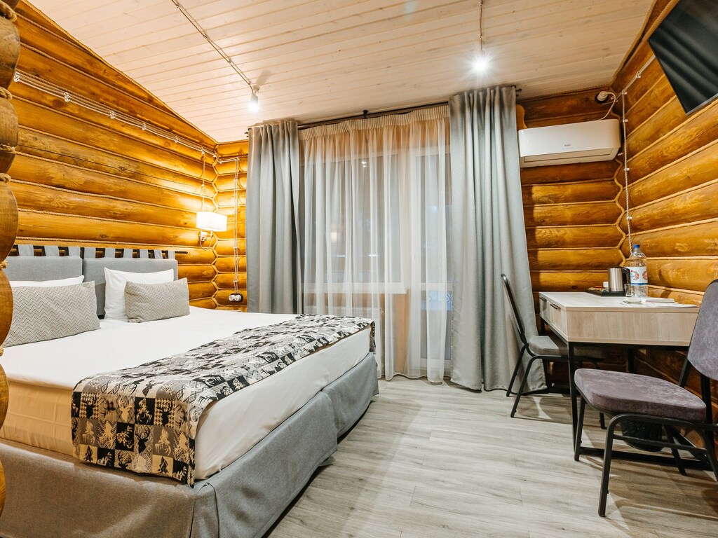 Номерной фонд составляют номера повышенной комфортности со всем необходимым. К услугам отдыхающих: спортивный комплекс, зона СПА, рестораны, караоке, ночной клуб, банный комплекс, мангальные площадки, услуги проката.
