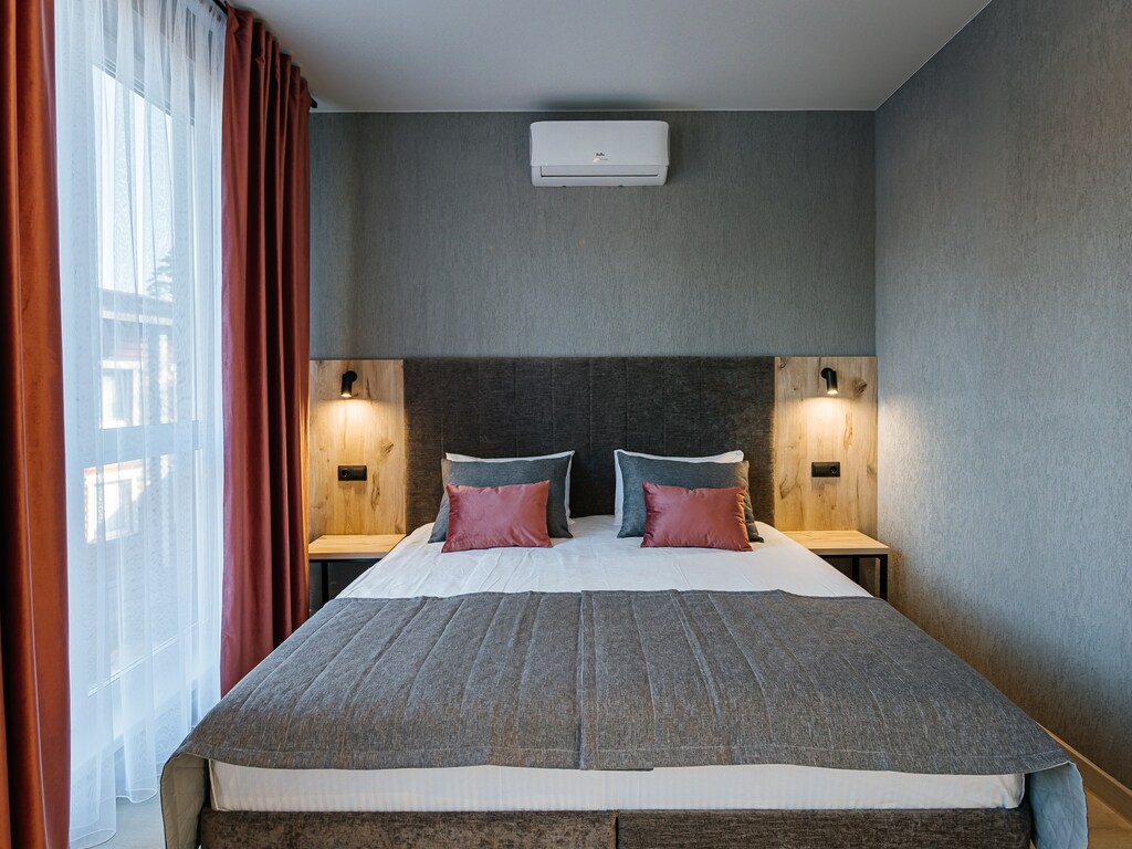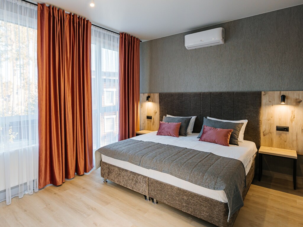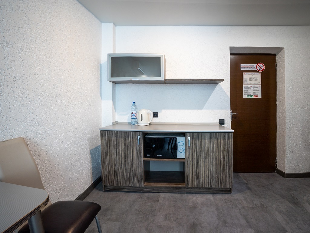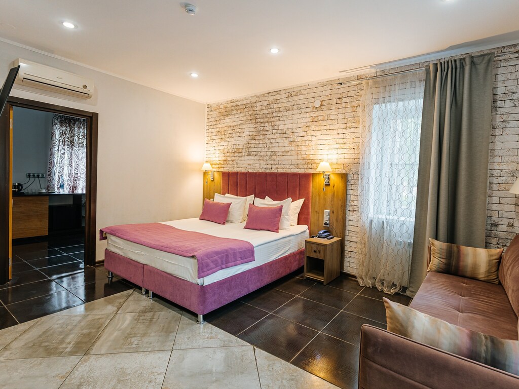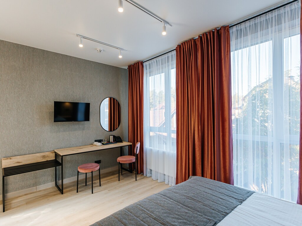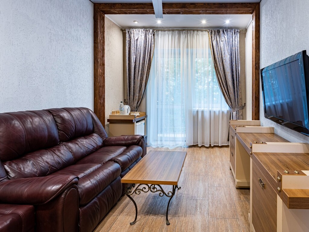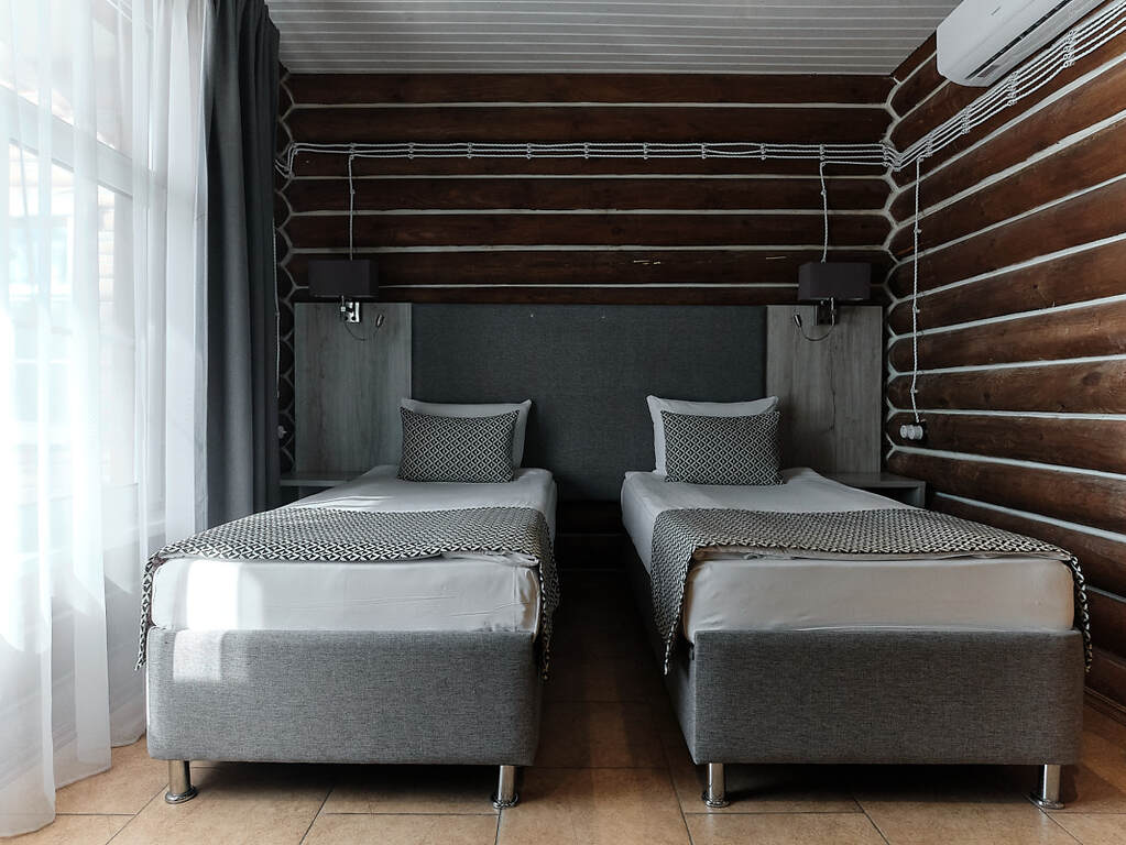 Номерной фонд составляют номера повышенной комфортности со всем необходимым. К услугам отдыхающих: спортивный комплекс, зона СПА, рестораны, караоке, ночной клуб, банный комплекс, мангальные площадки, услуги проката.