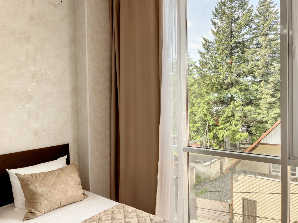 Из панорамных окон и с балконов открывается красивый вид на горы.
