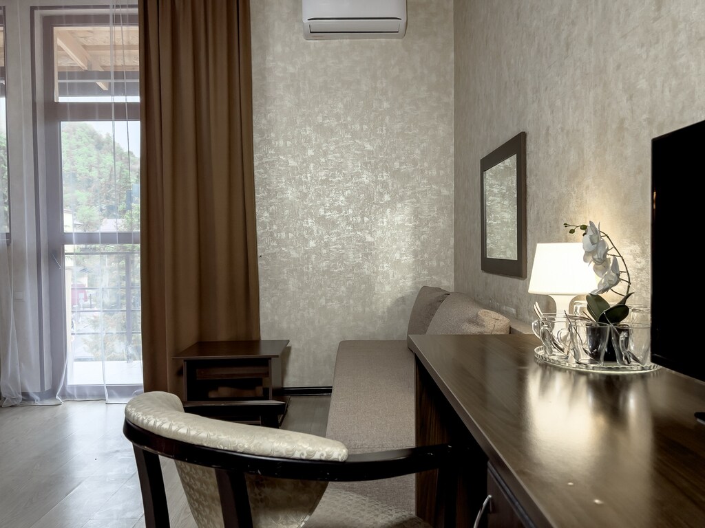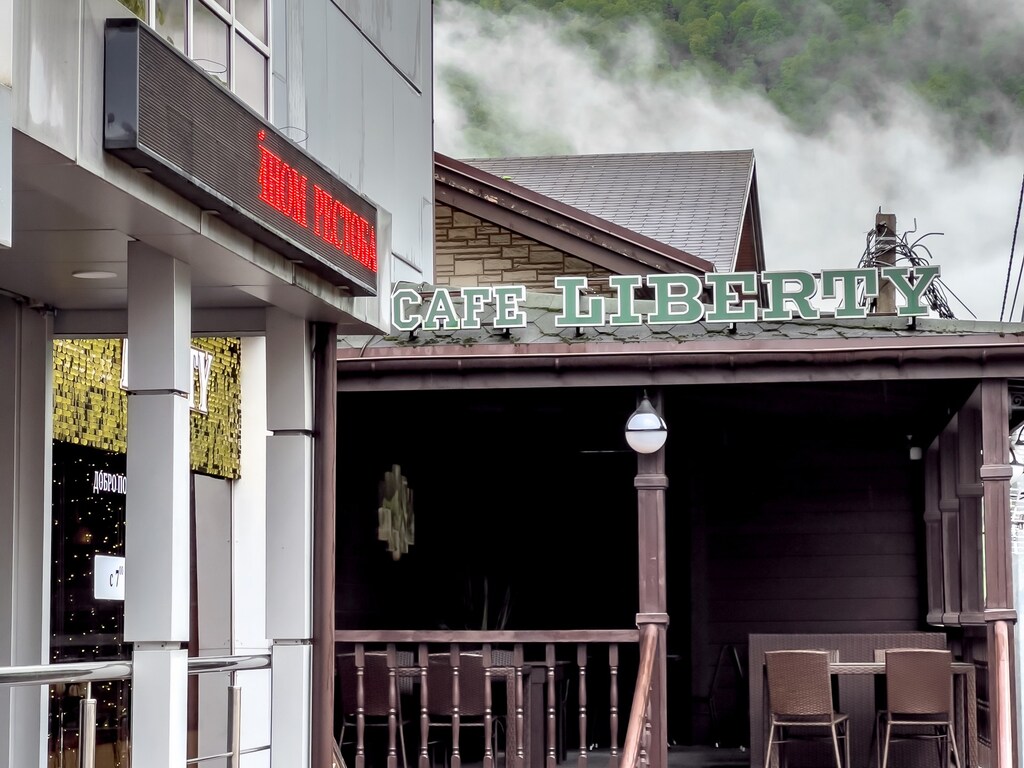 В отеле для гостей открыт рестобар Liberty, где подают блюда европейской кухни. Завтрак можно заказать в номер. Летом работает веранда с видом на горы.