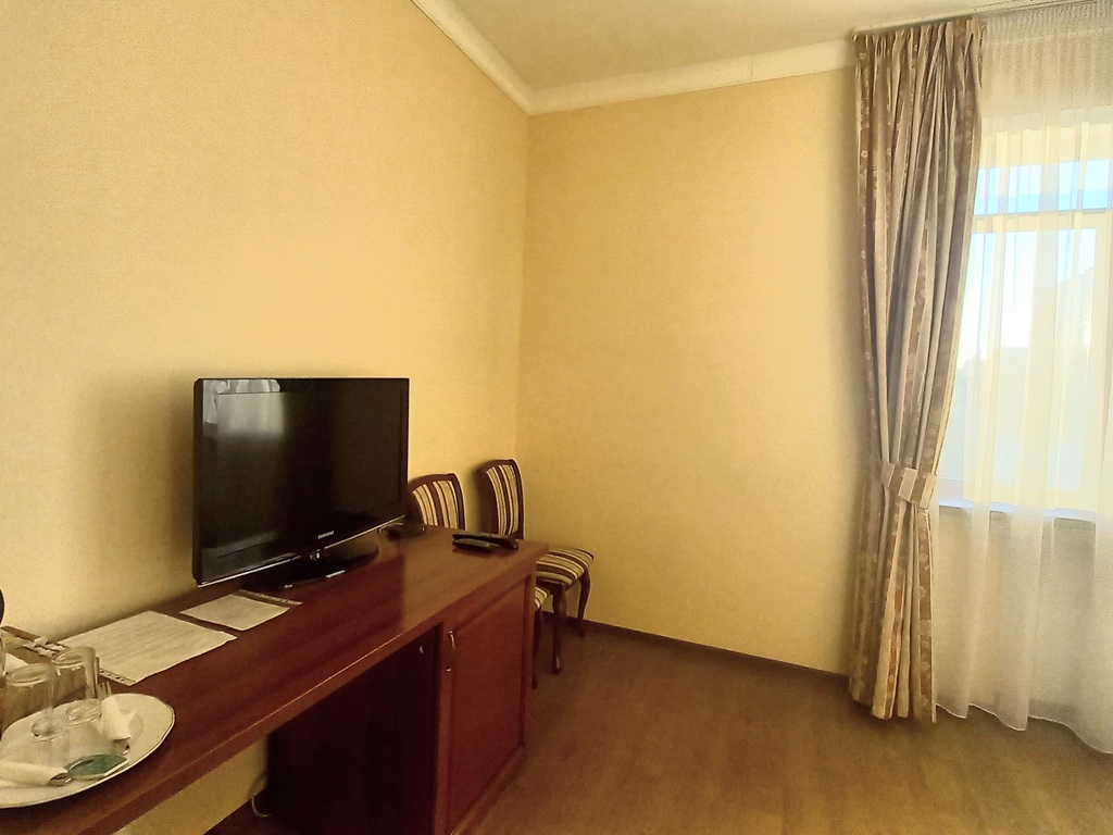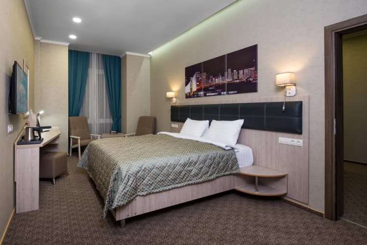 В комфортабельных номерах отеля возможно одно- двух- трех- и четырехместное размещение. Во всех номерах есть: собственный санузел, шкаф-купе, сплит система, телевизор, фен, холодильник, чайник, посуда. В шаговой доступности продуктовые магазины, аптеки.