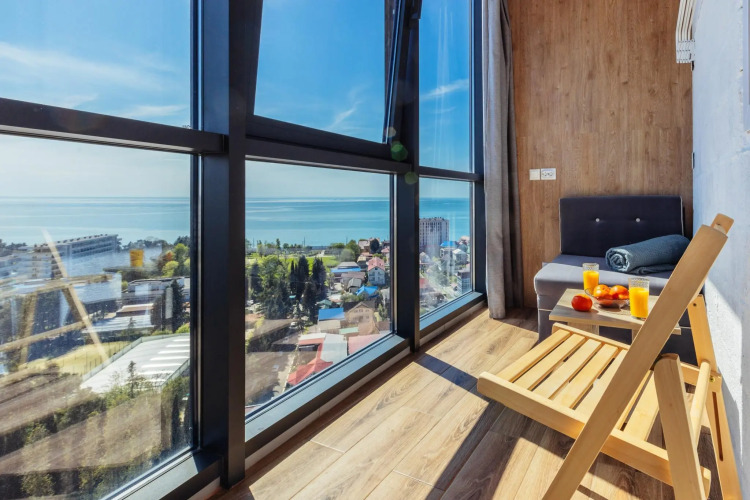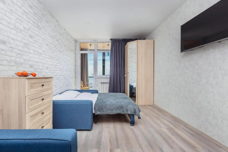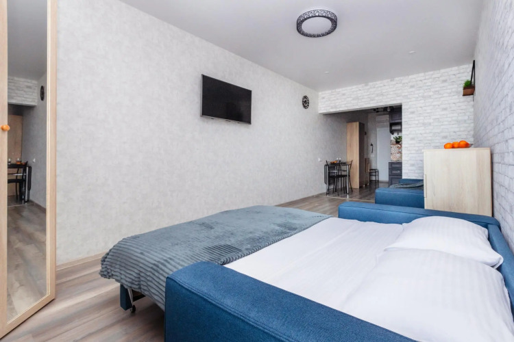 Данные апартаменты предназначены также и для проживания. Имеется кухонная зона: плита, вся необходимая посуда, место для приема пищи, микроволновая печь, утюг, фен.