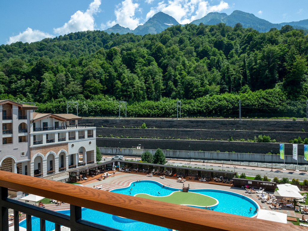 Вблизи отеля находятся рестораны, магазины, ярмарка и торгово-развлекательный центр «Горки Молл», где можно посетить аквапарк, боулинг, кинотеатр, а также парк «Времена года» со скейт-парком, инструкторскими службами и открытой сценой для курортных мероприятий.