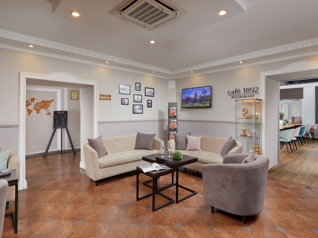 Завтрак по системе «шведский стол» проходит в ресторане «Café 1892» на первом этаже отеля. Завтрак подают с 7:00 до 11:00 ежедневно. С 12:00 до 23:00 работает меню A la Carte.