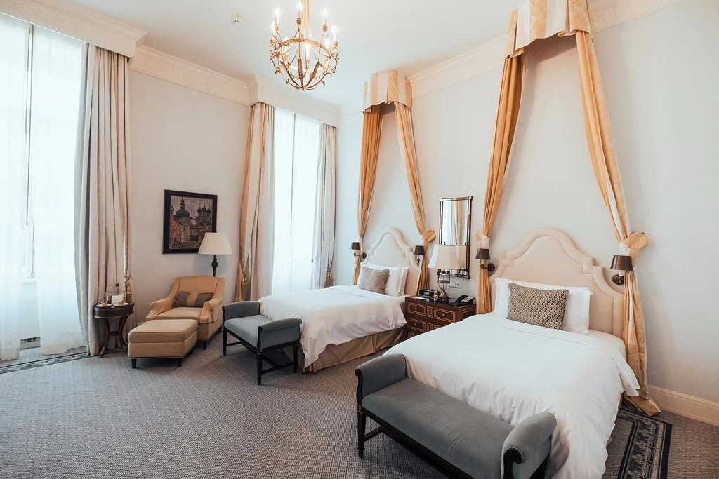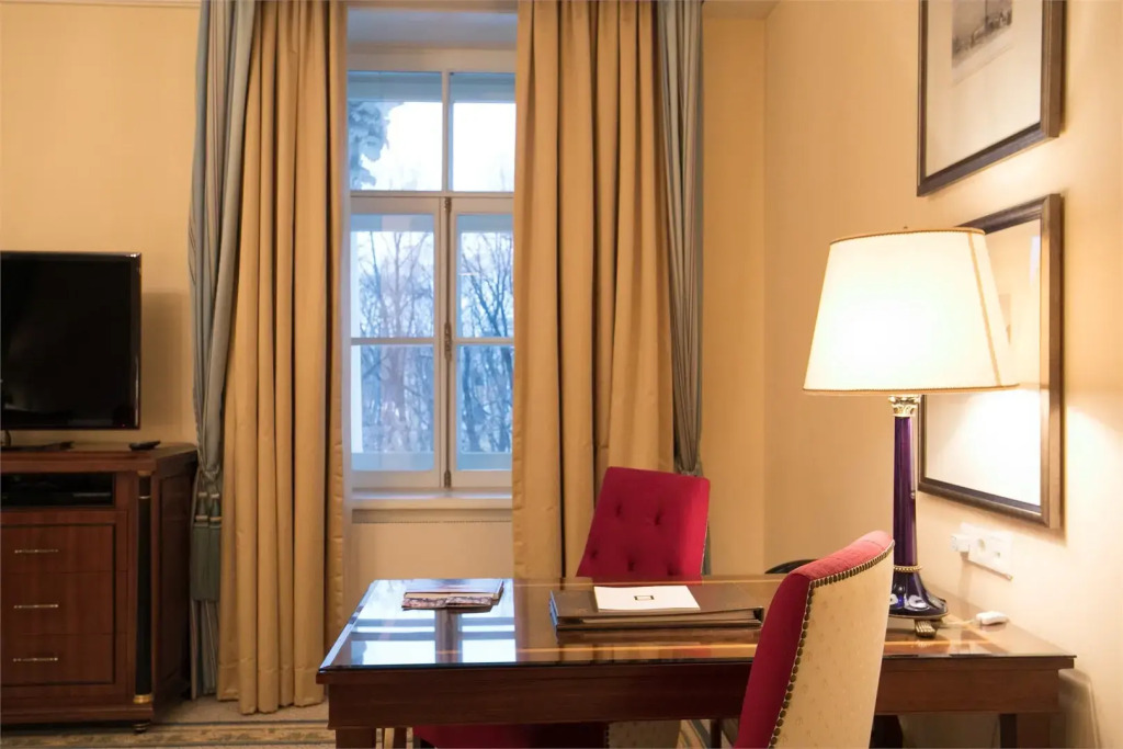 Отель Four Seasons Hotel Lion Palace расположен в историческом здании. Роскошные интерьеры отеля оформлены в стиле ампир и в классическом стиле.