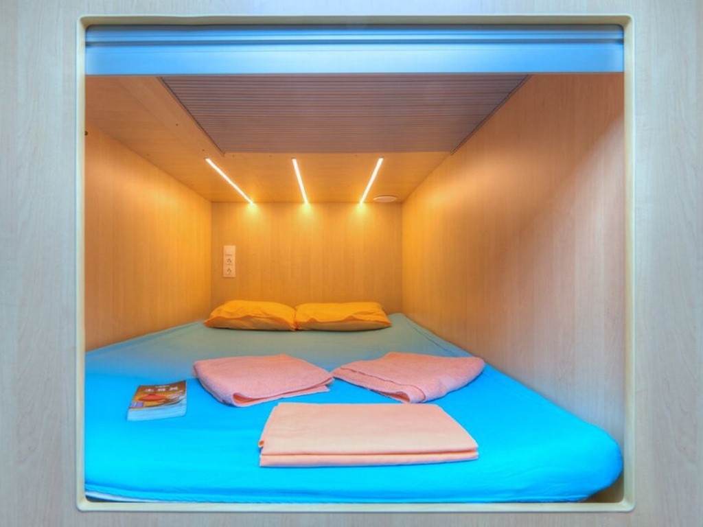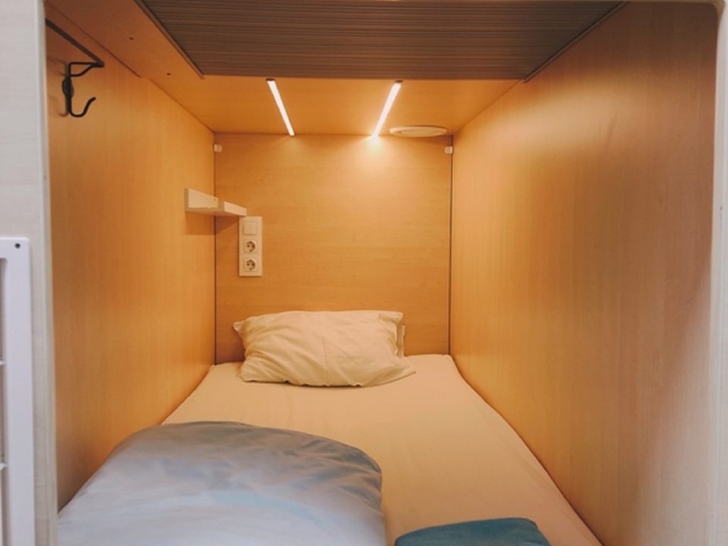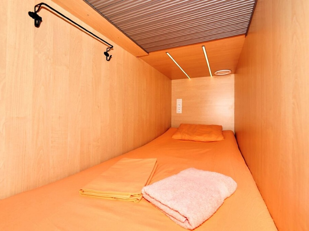 Мы предлагаем комфортное размещение в капсулах на 1 или 2 человек. Каждая капсула оснащена индивидуальной системой вентиляции, розетками, полочками. Каждому гостю предоставляется шкафчик для хранения личных вещей, запирающийся на ключ. В нашем капсульном отеле имеется полноценная кухня с электрической плиткой, печь СВЧ, электрический чайник, посуда для приготовления пищи, столовая посуда и все необходимые кухонные принадлежности.