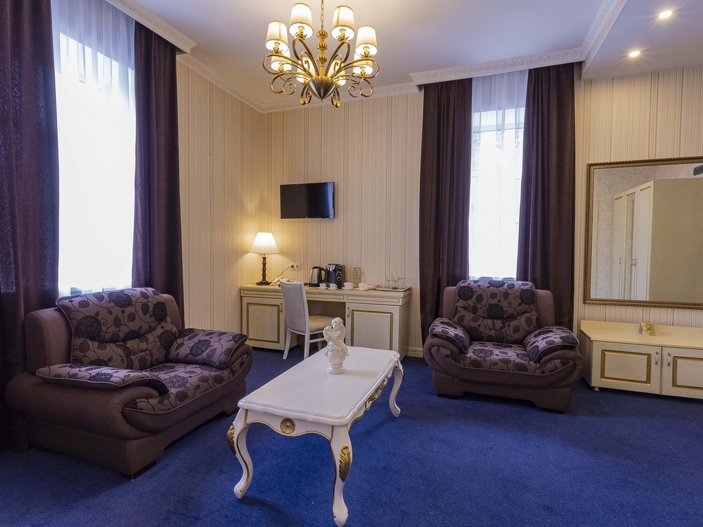 В «GOLDEN PLAZA» посетителей ждут комфортабельные номера от стандарта до класса люкс. Номера, вне зависимости от категории, оснащены всем необходимым для приятного отдыха. Интерьер бутик-отеля выдержан в современном европейском стиле, который приятно удивит даже самого строго критика.