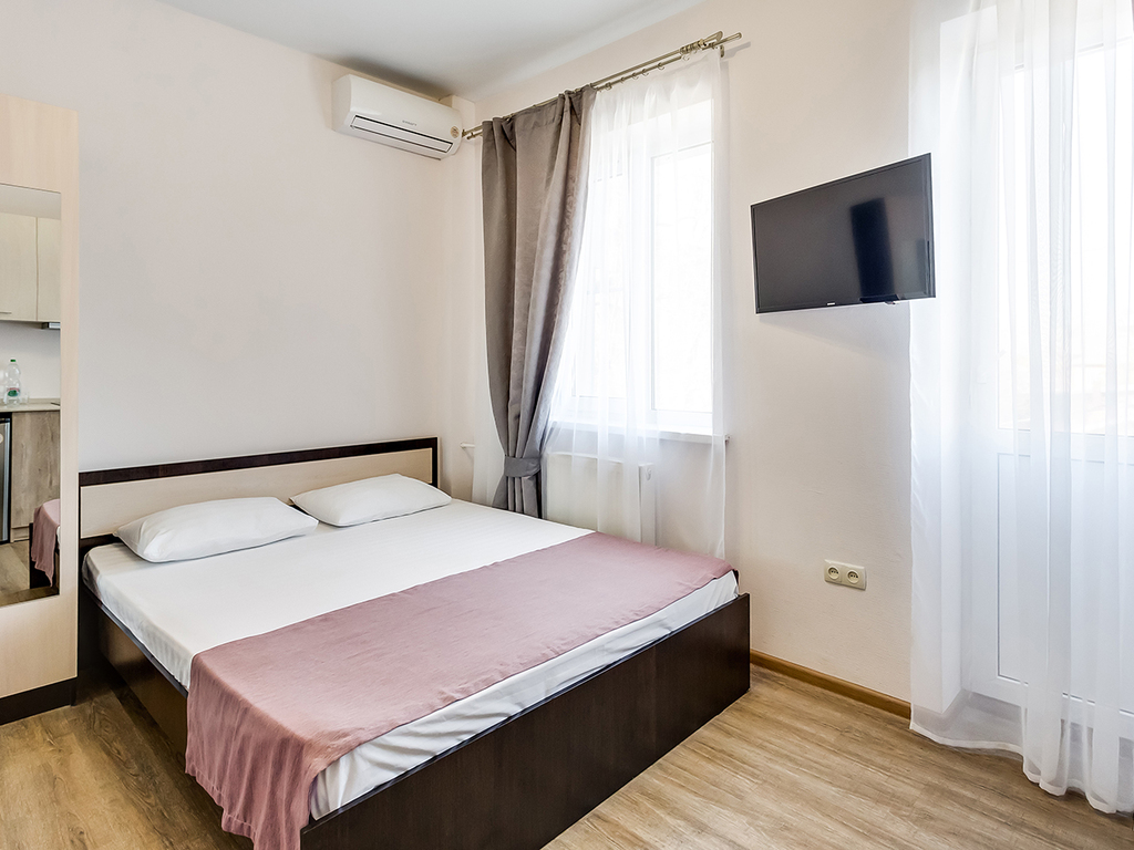 Апартаменты полностью оборудованы как для кратковременного размещения, так и для долгосрочного проживания. Помещения очень просторные и светлые. Здесь есть все необходимое: спальня со всей необходимой мебелью, ЖК телевизором и сплитом , полноценная кухня с плитой, мойкой и холодильником, санузел. Всем гостям бесплатно банные принадлежности и одноразовые тапочки. На всей территории бесплатный Wi-Fi на высокой скорости. Для вашего авто есть парковка во дворе за забором.