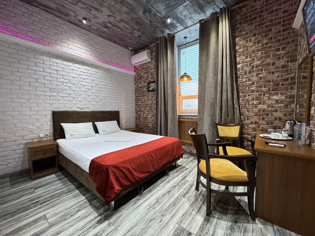 Мы предлагаем гостям одно-, двух- и трехместные номера разного уровня. Гарантируем высокий сервис, а также лучшее соотношение по цене и качеству для столичного отеля. Вам понравятся наши уютные комнаты в комфортных для глаз теплых тонах. Гостиница отлично подойдет как для туристов и командировочных, так и для влюбленных пар, которые хотят провести романтическое свидание в красивом месте.