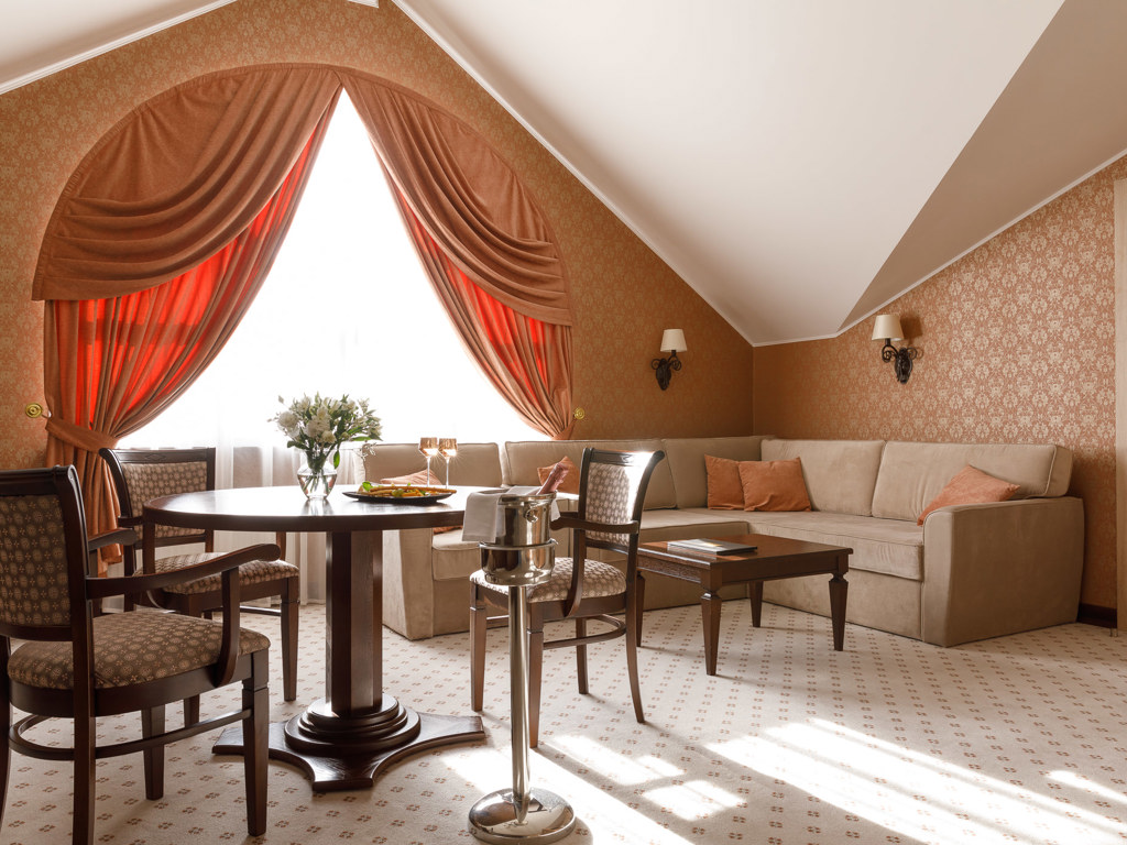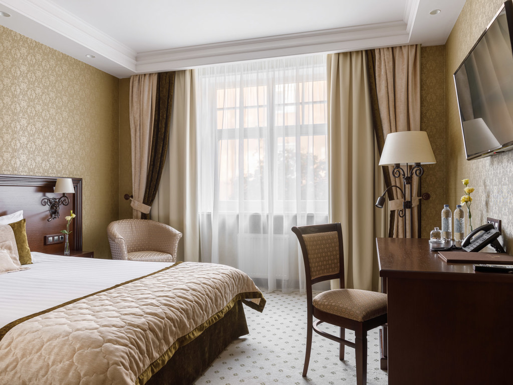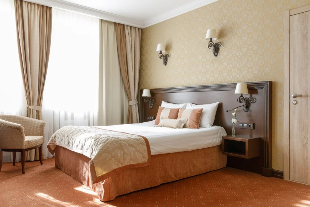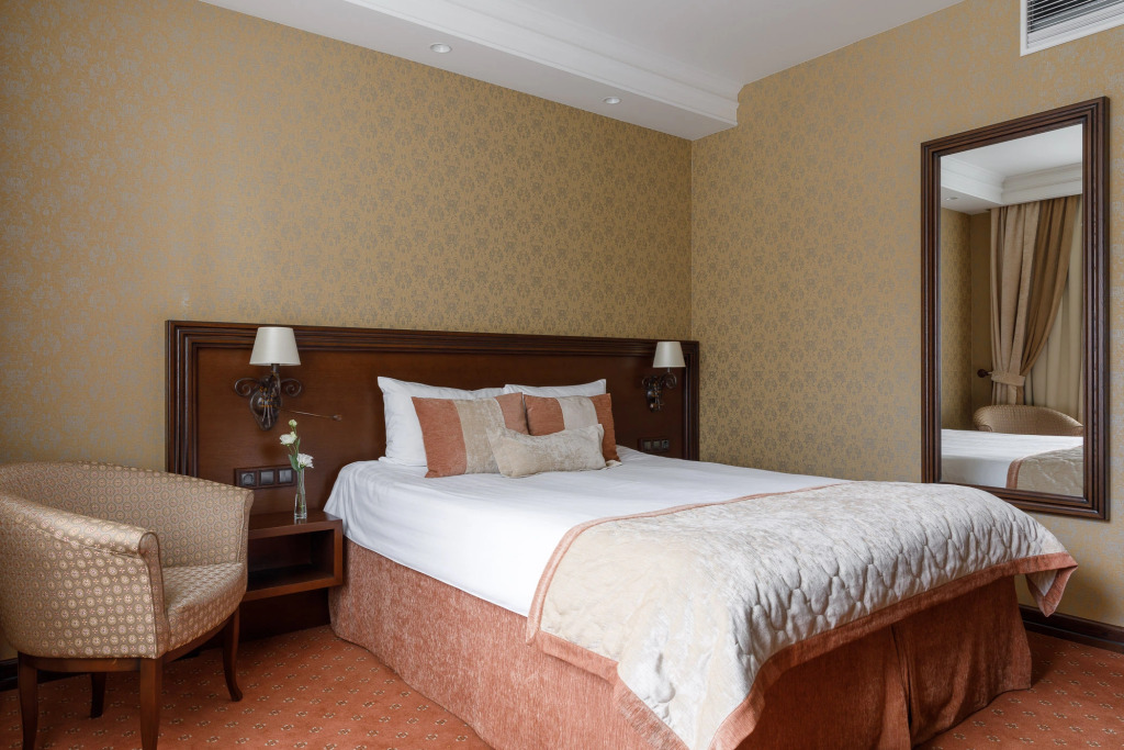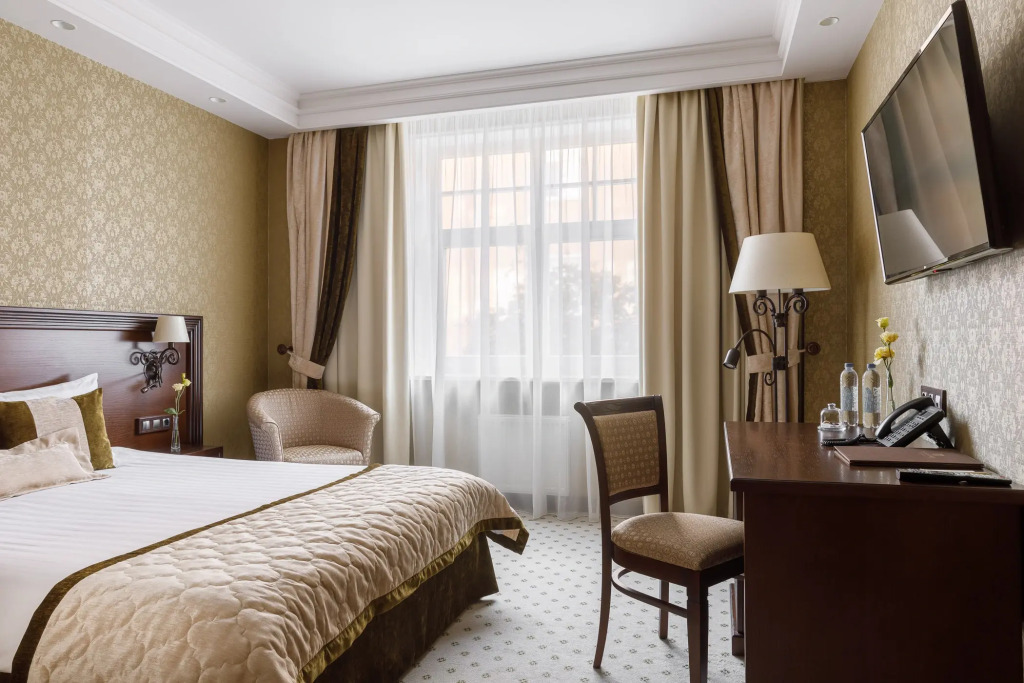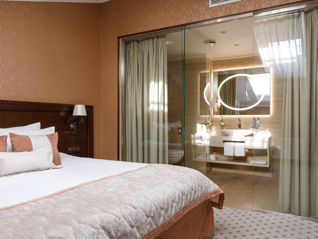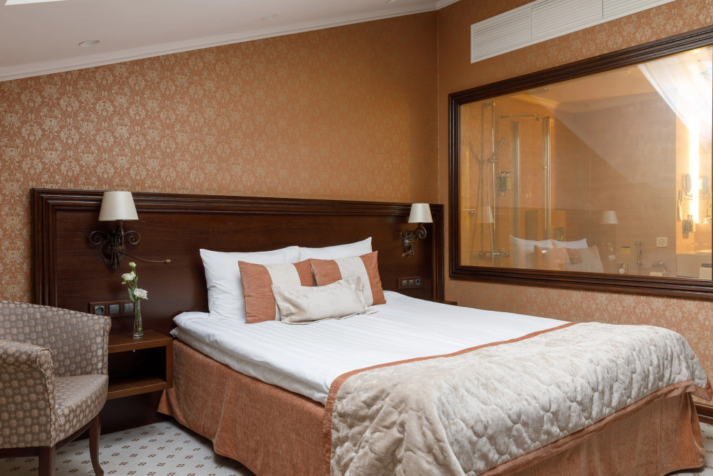 Гостиничные интерьеры перекликаются с архитектурой города и изысканно подчеркивают ее.