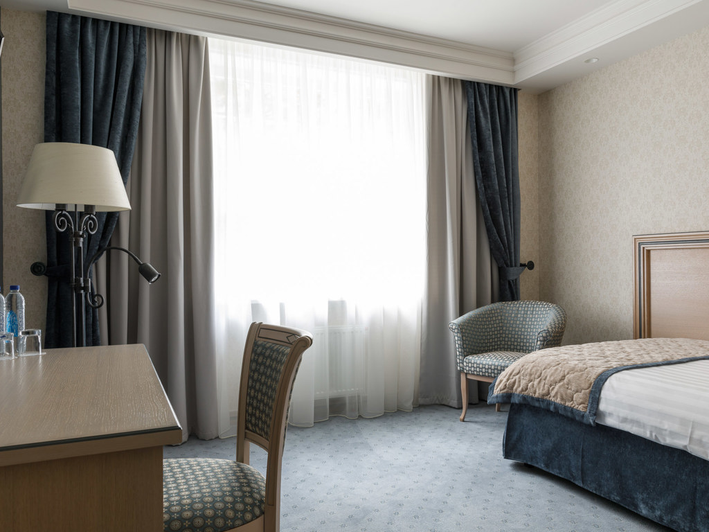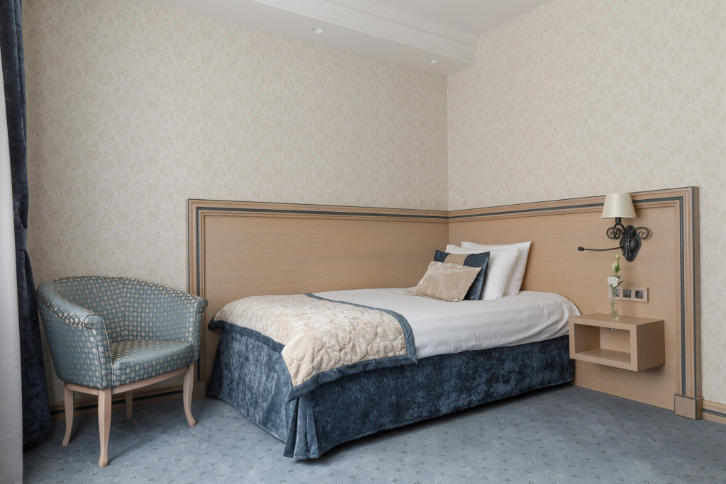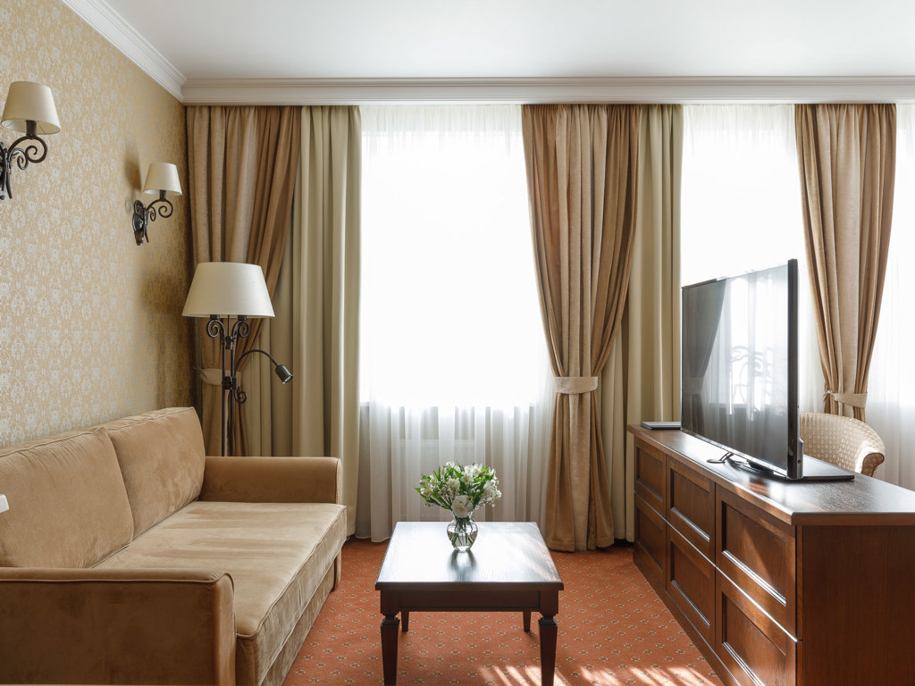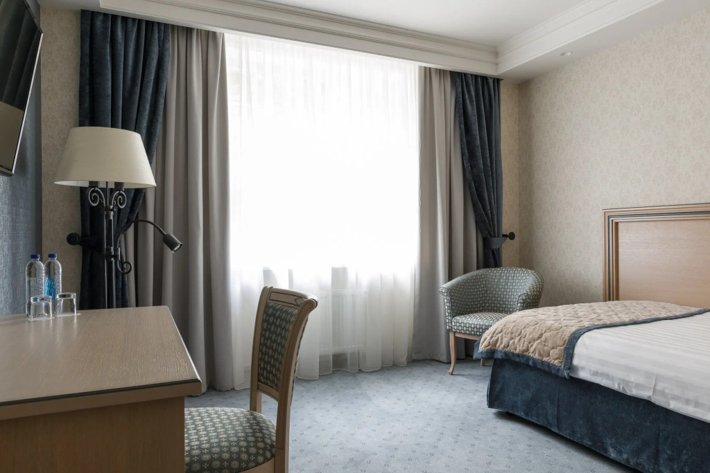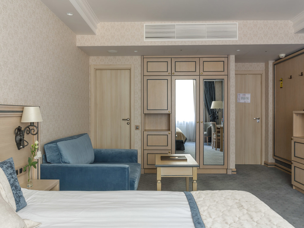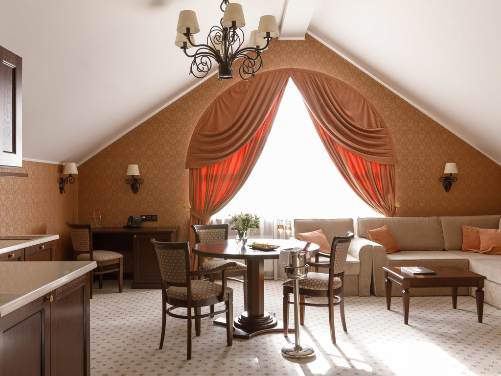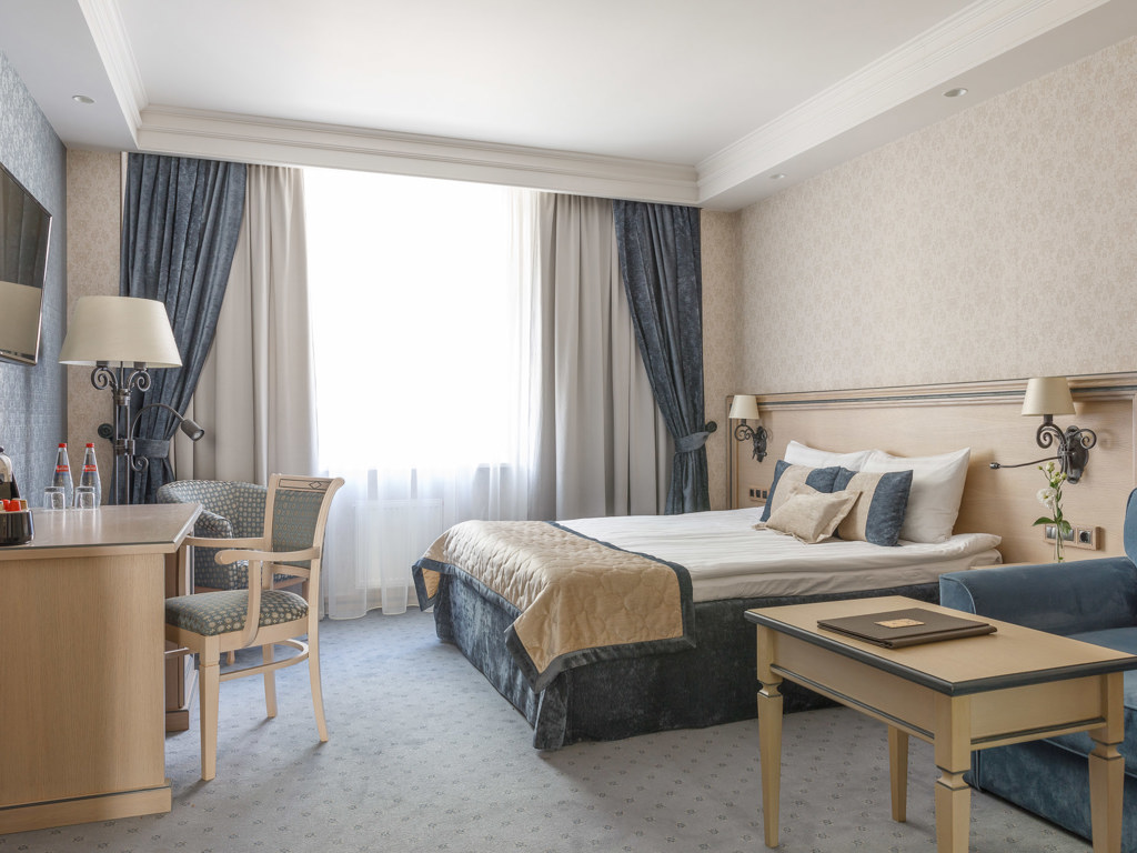 Гостиничные интерьеры перекликаются с архитектурой города и изысканно подчеркивают ее.