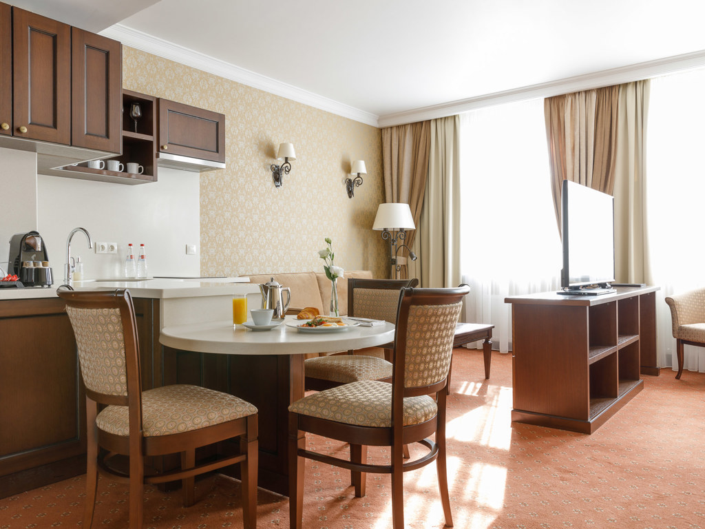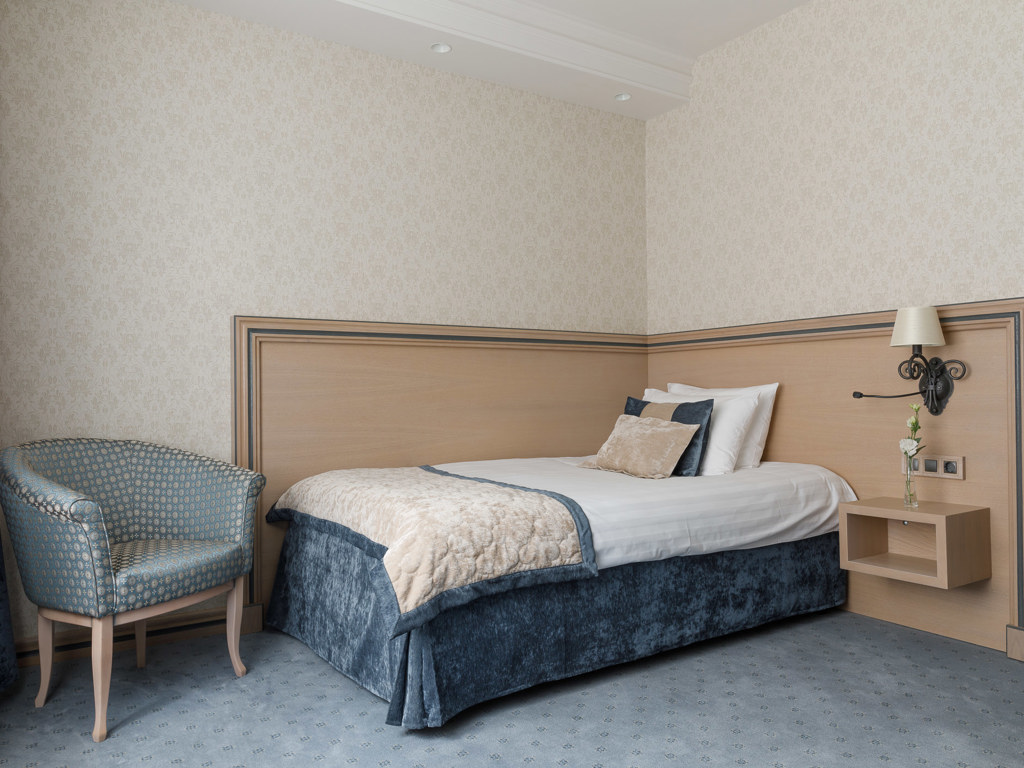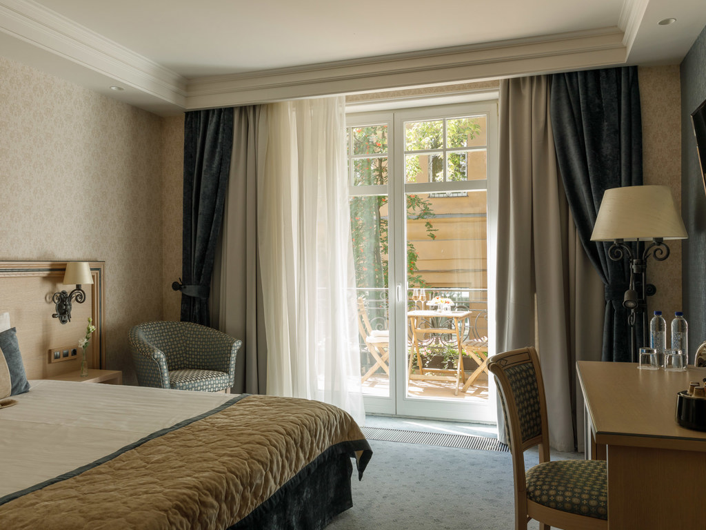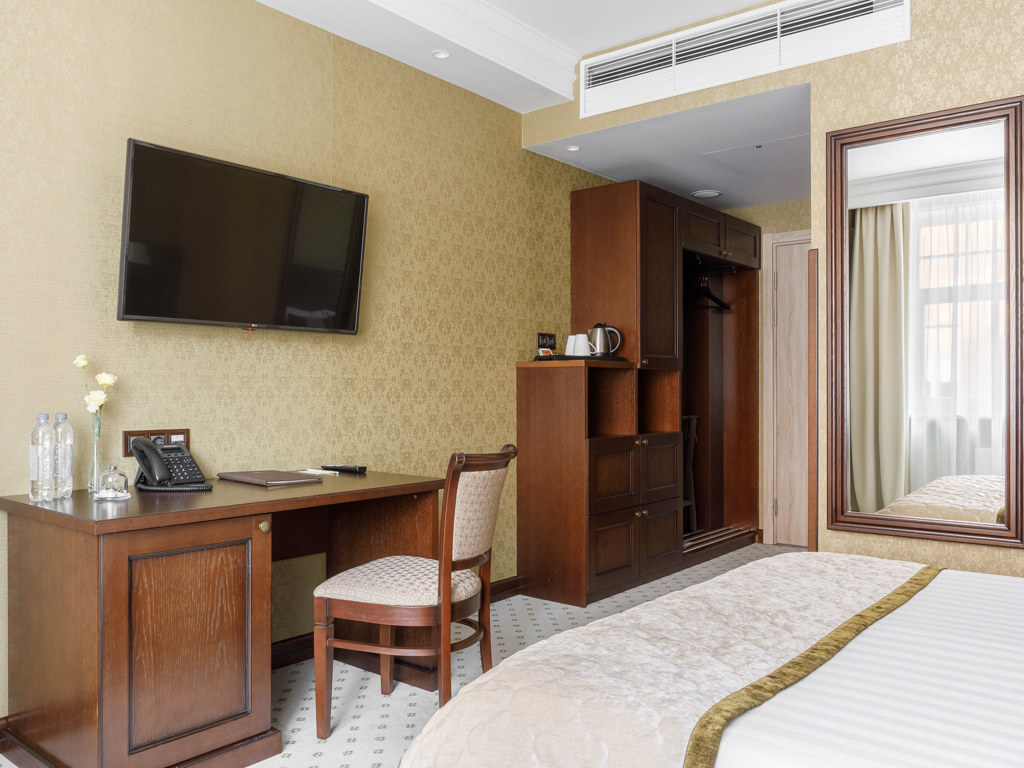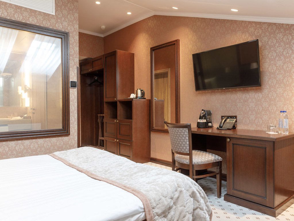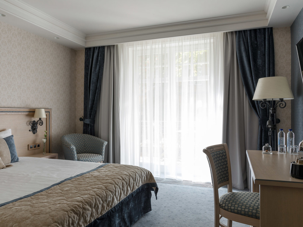 Гостиничные интерьеры перекликаются с архитектурой города и изысканно подчеркивают ее.
