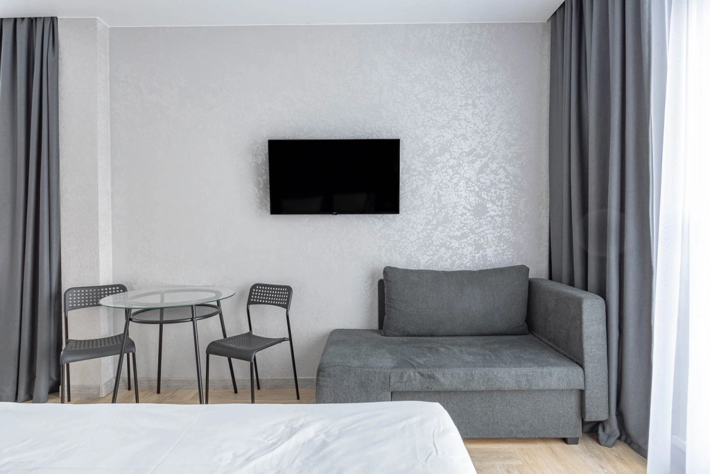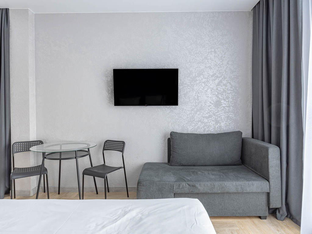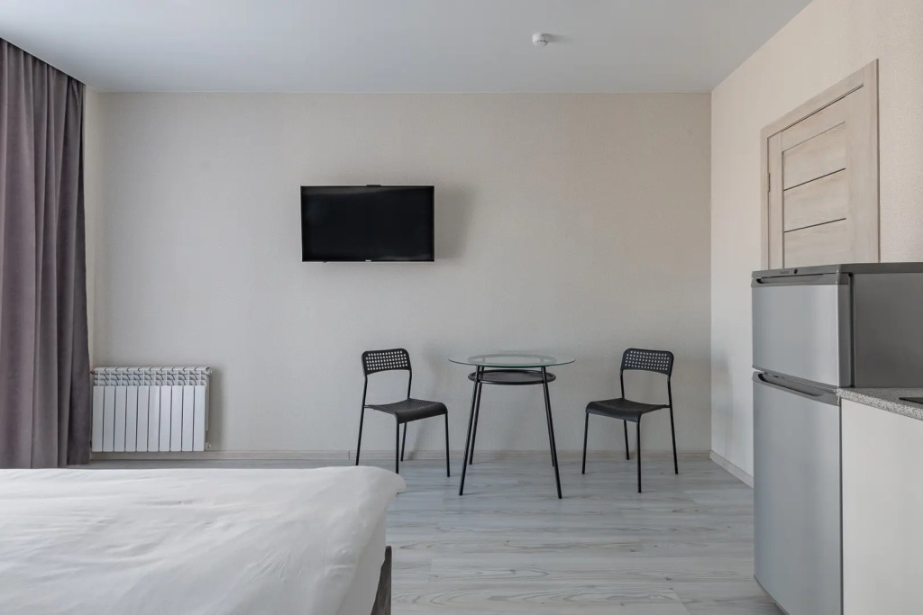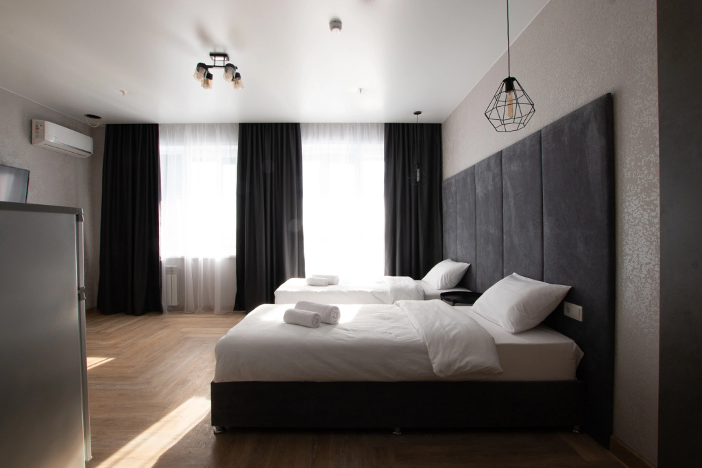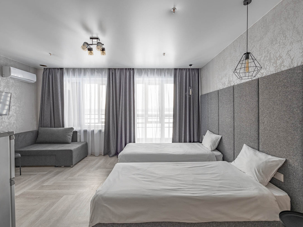 Номера полностью укомплектованы мебелью и бытовой техникой. В некоторых номерах установлена гидромассажная ванная. Очень удобные матрасы! Продуманный интерьер.