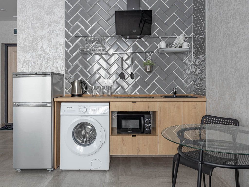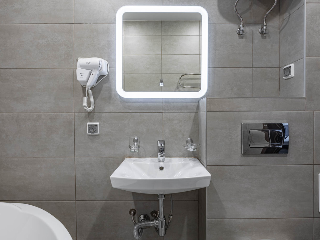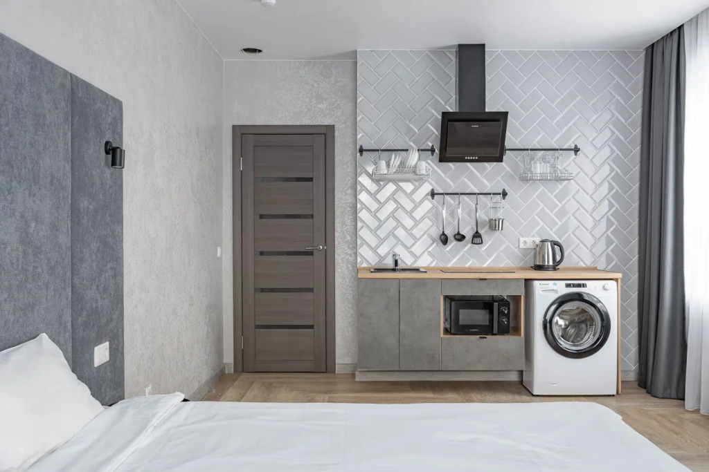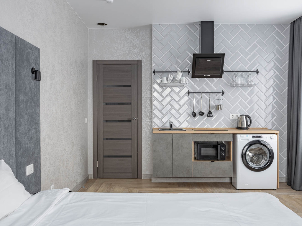 Номера полностью укомплектованы мебелью и бытовой техникой. В некоторых номерах установлена гидромассажная ванная. Очень удобные матрасы! Продуманный интерьер.