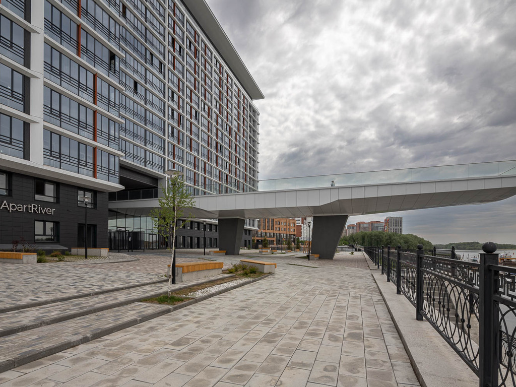 Апарт-отель находится всего в 38 метрах от реки, недалеко от метро "Речной вокзал". В здание встроен шикарный "Парящий мост" (для любителей красивых фото). Также на территории дома есть свой Маяк, прогулочная набережная реки Обь, подземная парковка и пожалуй лучший вид на реку!