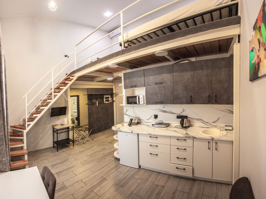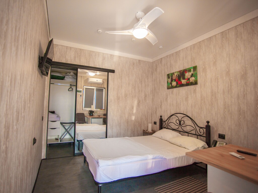 В отеле 19 номеров различных категорий: стандарт одноместный, стандарт улучшенный двухместный, двухуровневая студия «Бизнес», двухуровневая студия, стандарт двухместный «Комфорт». Все номера, независимо от категории, оснащены согласно современным стандартам сервиса: в каждом имеется санузел, душ, халат, фен, банные принадлежности, телевизор с плоским экраном, телефон, холодильник, вентилятор, чайник, столовые приборы, чай, кофе, питьевая вода. Некоторые номера оснащены кухонным уголком с электроплитой, микроволновой печью, посудой и столовыми приборами, стиральной машиной, зубным набором и тапочками, кондиционером. Имеется бизнес-уголок, где по запросу гостей может быть предоставлен ноутбук и принтер.