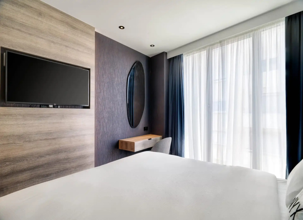 Окно от шума не спасает совсем, сначала я подумала, что у нас открыто окно, так как ощущение, что я на улице, очень слышно, подхожу-окно закрыто и понимаю, что нам оставшиеся 5 часов сна спать вот с таким шумом проезжавших машин и людей в отеле.