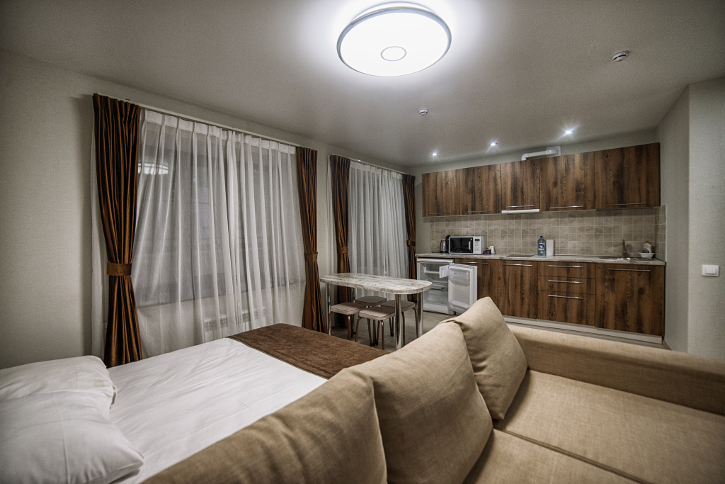 Номеров категории 'Студия': 1,'Апартамент': 6,'Люкс': 1.