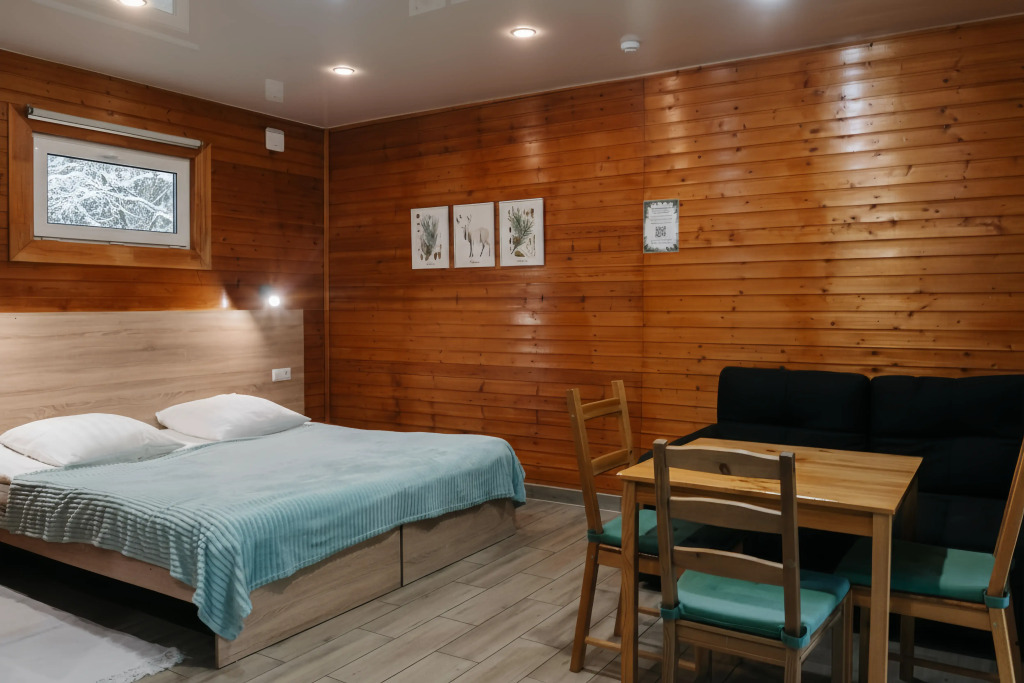 Гостям предлагается 18 благоустроенных круглогодичных номеров и 10 летних. К услугам гостей: бесплатная автостоянка, Wi-Fi, ресторан, 2 бани, летние беседки, детская площадка, мангалы, беседка-аил для групповых мероприятий.