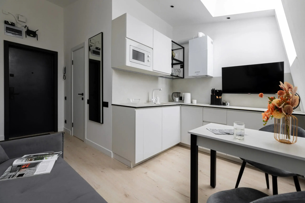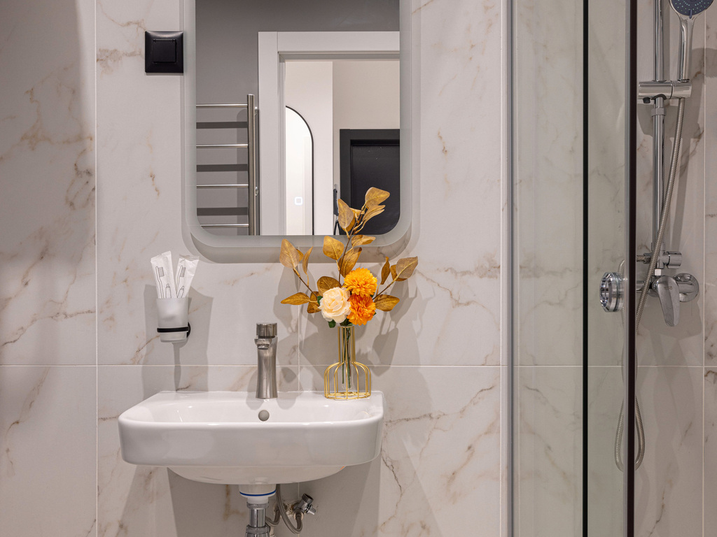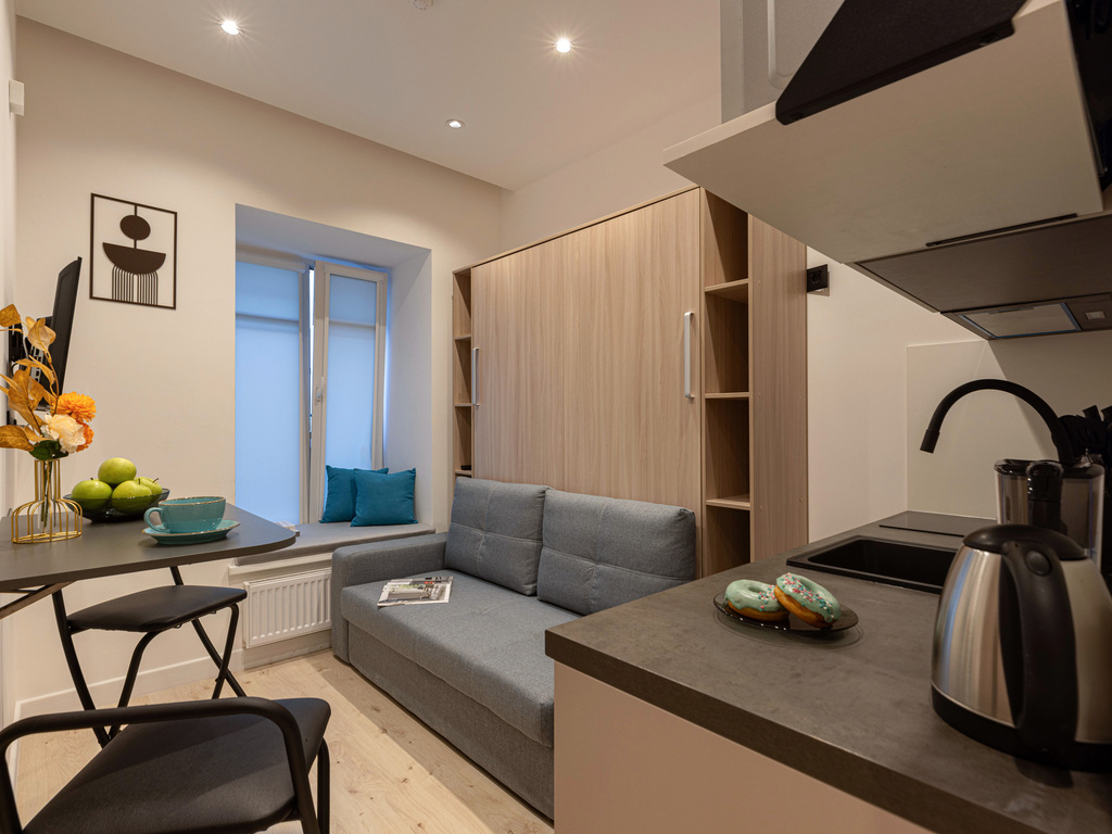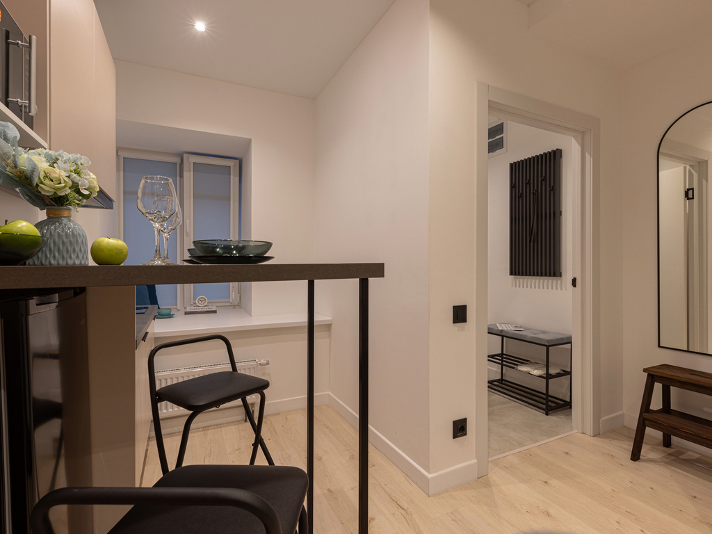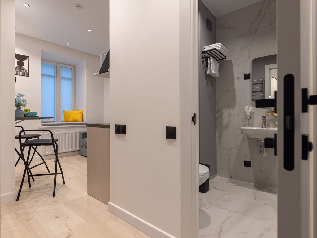 В отделке использованы материалы премиального качества. Дизайнерская мебель, качественный текстиль и наполнение – в соответствии с отельными стандартами. Комплекс оснащен системами видеонаблюдения и удаленного контроля доступом. Повышенная шумоизоляция, новые инженерные сети. Собственная благоустроенная территория, тихий спокойный двор в 2-х шагах от метро.